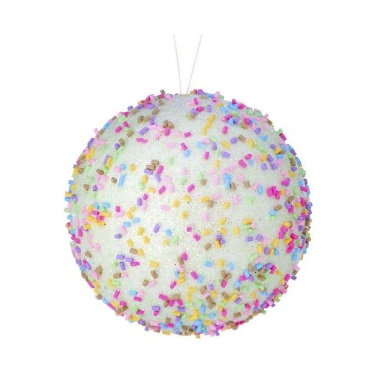 Add a touch of whimsy and fun to your holiday decor with our 4” Green Sprinkle Ball Ornament! With its playful sprinkle design and vibrant light green color, this ornament is sure to make your tree stand out. Give your tree a unique and festive look this holiday season with our Green Sprinkle Ball Ornament. The rainbow-sprinkles coating on this gorgeous green orb makes this piece a fun favorite for your Sweet Treats themed tree or other Sweet Shoppe themed decor. MTX68953-GRMU