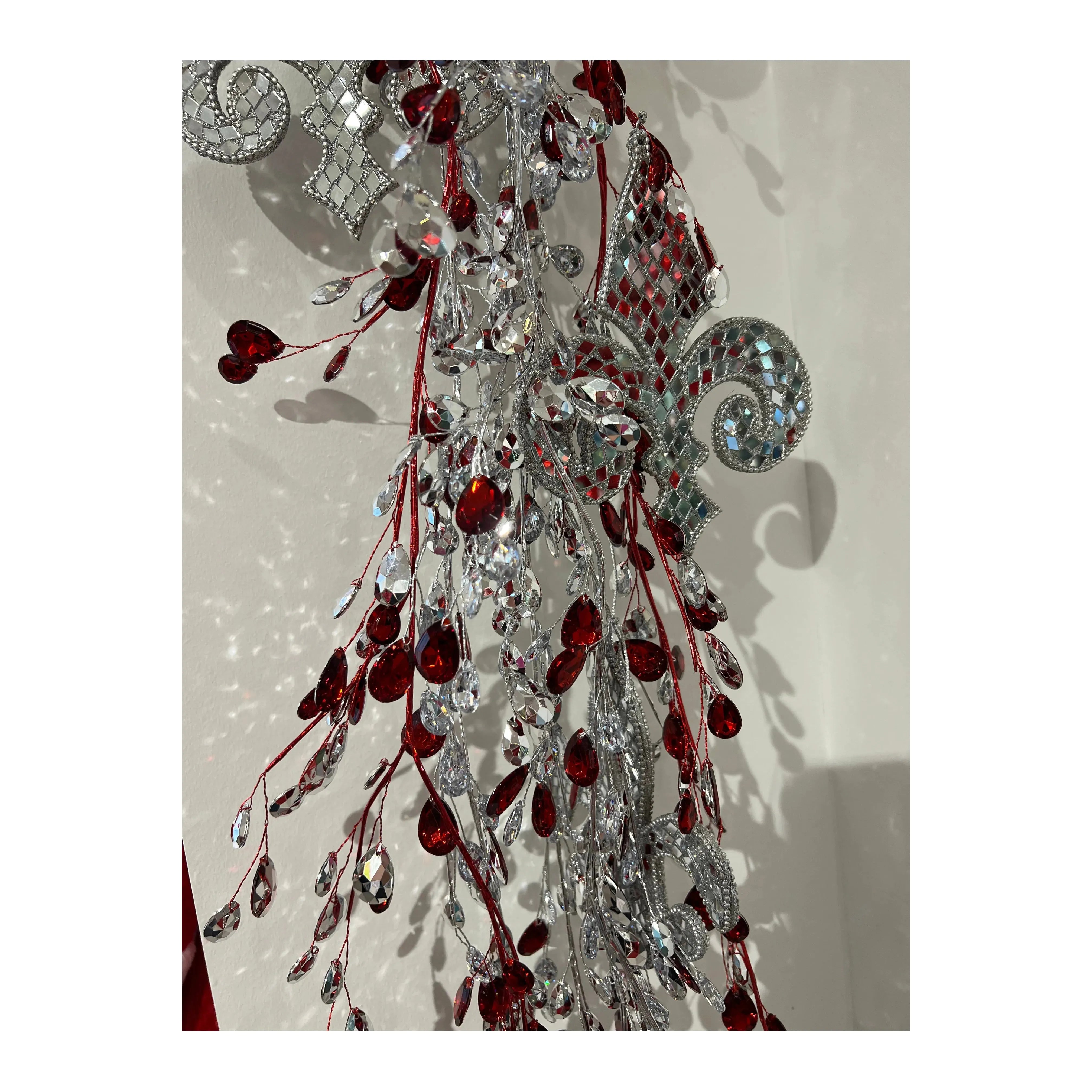 Elevate your home decor with this stunning 48-inch metal garland adorned with glistening silver faux jewels. Its intricate design features delicate branches adorned with teardrop-shaped jewels that catch and reflect light, creating a captivating display. This garland is perfect for adding a touch of elegance and sophistication to your living spaces, enhancing the ambiance with its sparkling beauty. Drape it along a mantelpiece, wind it around a staircase banister, or incorporate it into your holiday decorations for a festive touch. With its versatile design, this garland effortlessly complements various decor styles, making it a timeless addition to your home. MTX72743SILV