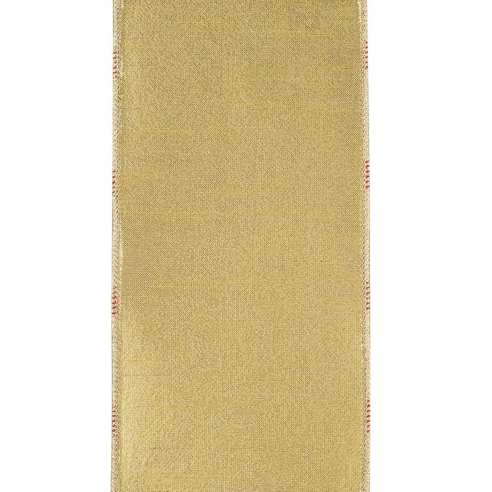 Elevate your crafting and home decor projects with this stylish black grand diamond deluxe metallic backed wired edge ribbon. Measuring 4 inches wide and 5 yards long. Crafted from two fused fabrics, featuring reinforced stitching and thicker wire, this double-sided ribbon ensures exceptional shape retention. One side boasts a black and white harlequin print, while the other showcases a crisp gold canvas and gold sewn edge. 94656W-222-10F