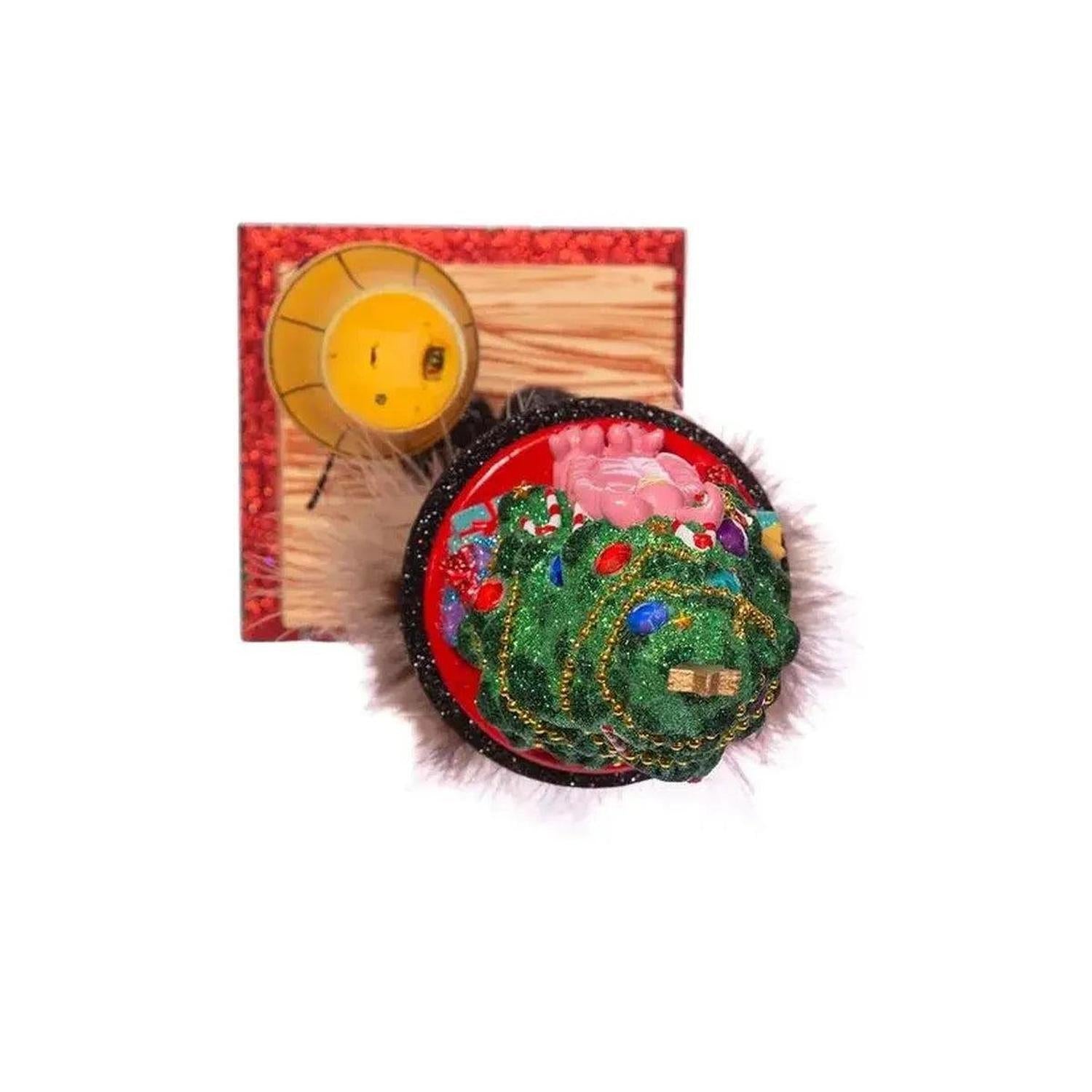 This A Christmas Story™ nutcracker from Kurt Adler is a fun and festive addition to any holiday décor. Perfect for fans of A Christmas Story™, this piece features a nutcracker wearing a glittered suit standing on a "FRAGILE" base. His hat is a tribute to Christmas morning with Ralphie in his pink bunny suit standing in front of a decorated glittered Christmas tree. Also included in this piece is the iconic leg lamp which is standing next to him. CS6201L