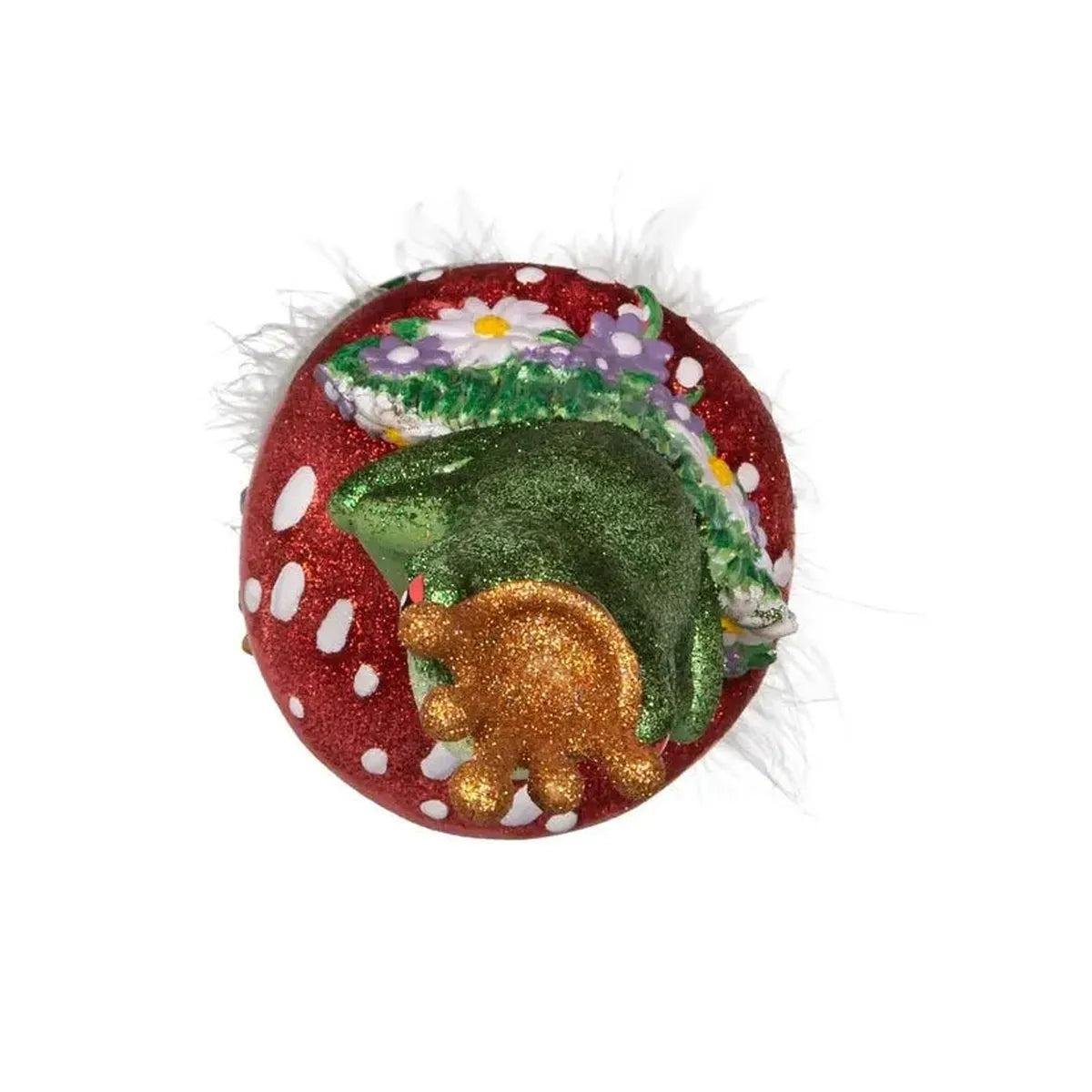 Hollywood Nutcrackers™ is a whimsical collection of nutcrackers created exclusively for Kurt S. Adler, Inc. and features an assortment of designs that put a unique, vibrant, memorable twist on traditional nutcrackers. This 16.5-inch unique piece is a fun, colorful new take on the Frog Prince. Wearing shades of red, blue, and tan this glittery, quirky piece is standing on a glittered mushroom base and holds a bird topped staff and is topped with a mushroom hat with a frog prince, complete with a regal gold crown. Item # HA0676