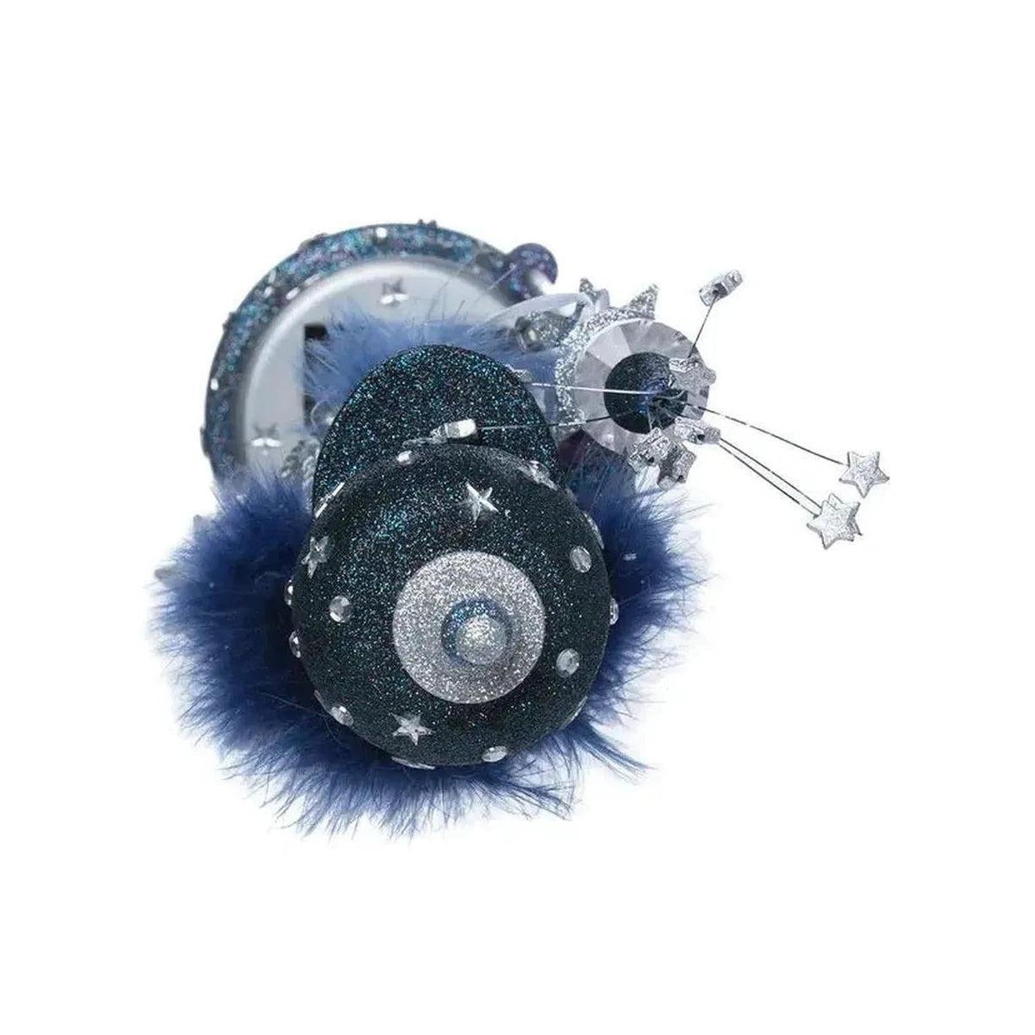Designed by renowned artist Holly Adler, Hollywood Nutcrackers™ are a whimsical collection of nutcrackers created exclusively for Kurt S. Adler, Inc., and features a variety of designs including Christmas, fantasy, and everyday nutcrackers. This Hollywood Nutcracker™ features a guard nutcracker dressed in navy blue attire with a navy hat embellished with silver stars. Around his waist hangs a cutout of a silver star and moon and he holds a blue and silver staff. This Hollywood Nutcracker™ is here to protect and serve you while the stars remain in the night sky. Item# HA0179