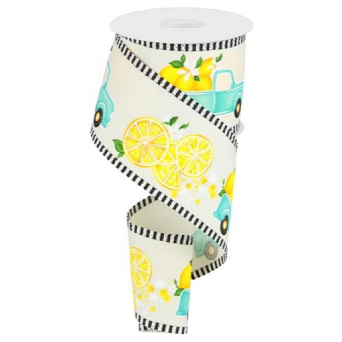 2.75" Truck with Lemons Stripe Ribbon: Ivory (10 Yards)