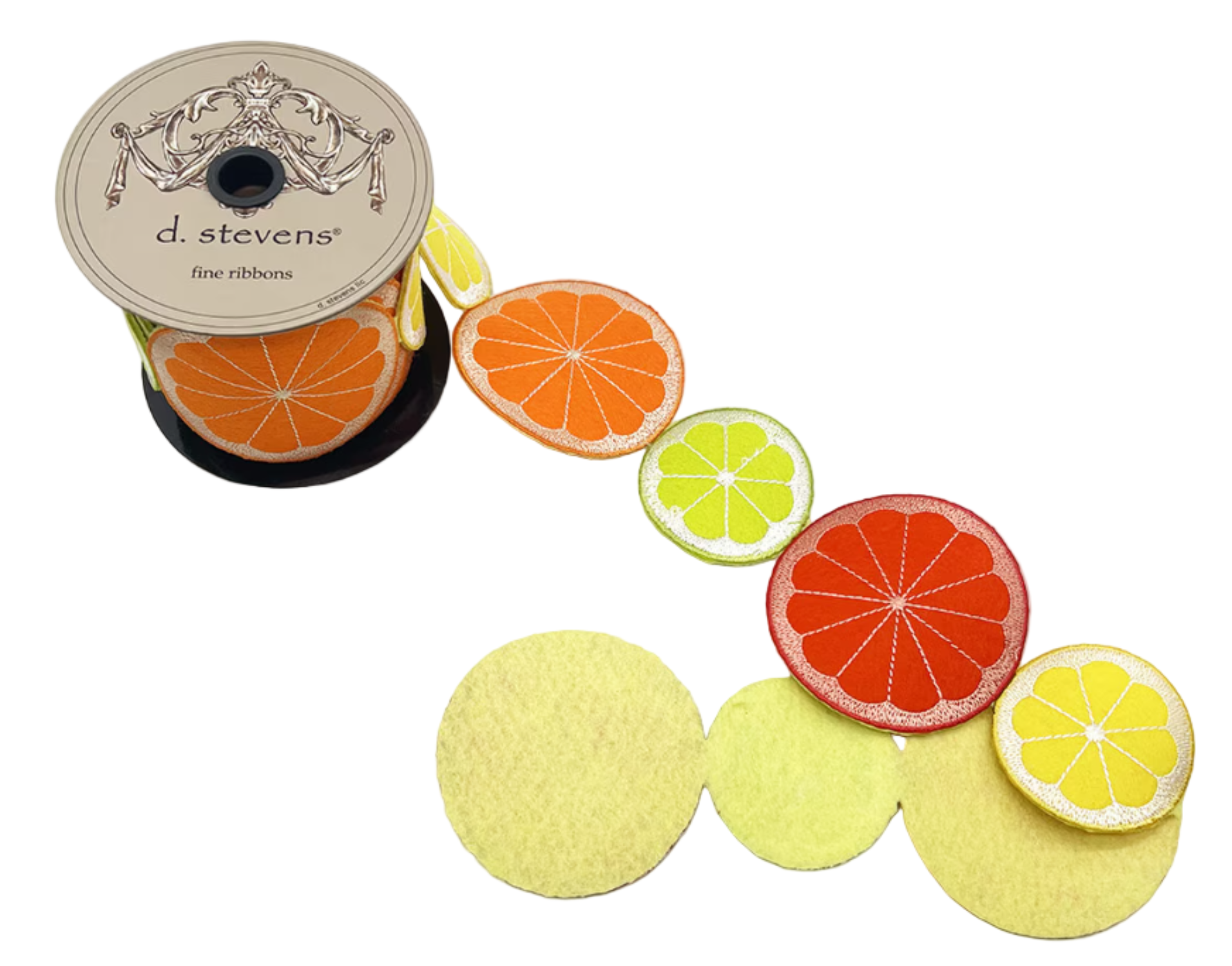This charming felt citrus fruit garland spans 5 yards of vibrant lemon, lime and citrus orange embroidered details, offering versatile decorating possibilities. Display it as a continuous garland for festive appeal, or cut individual pieces to incorporate into wreaths, floral arrangements, and seasonal displays. Each watermelon segment measures 3.5 inches, making it ideal for both large-scale installations and detailed craft projects. Perfect for adding a playful, summery touch to any décor scheme. 18-4792