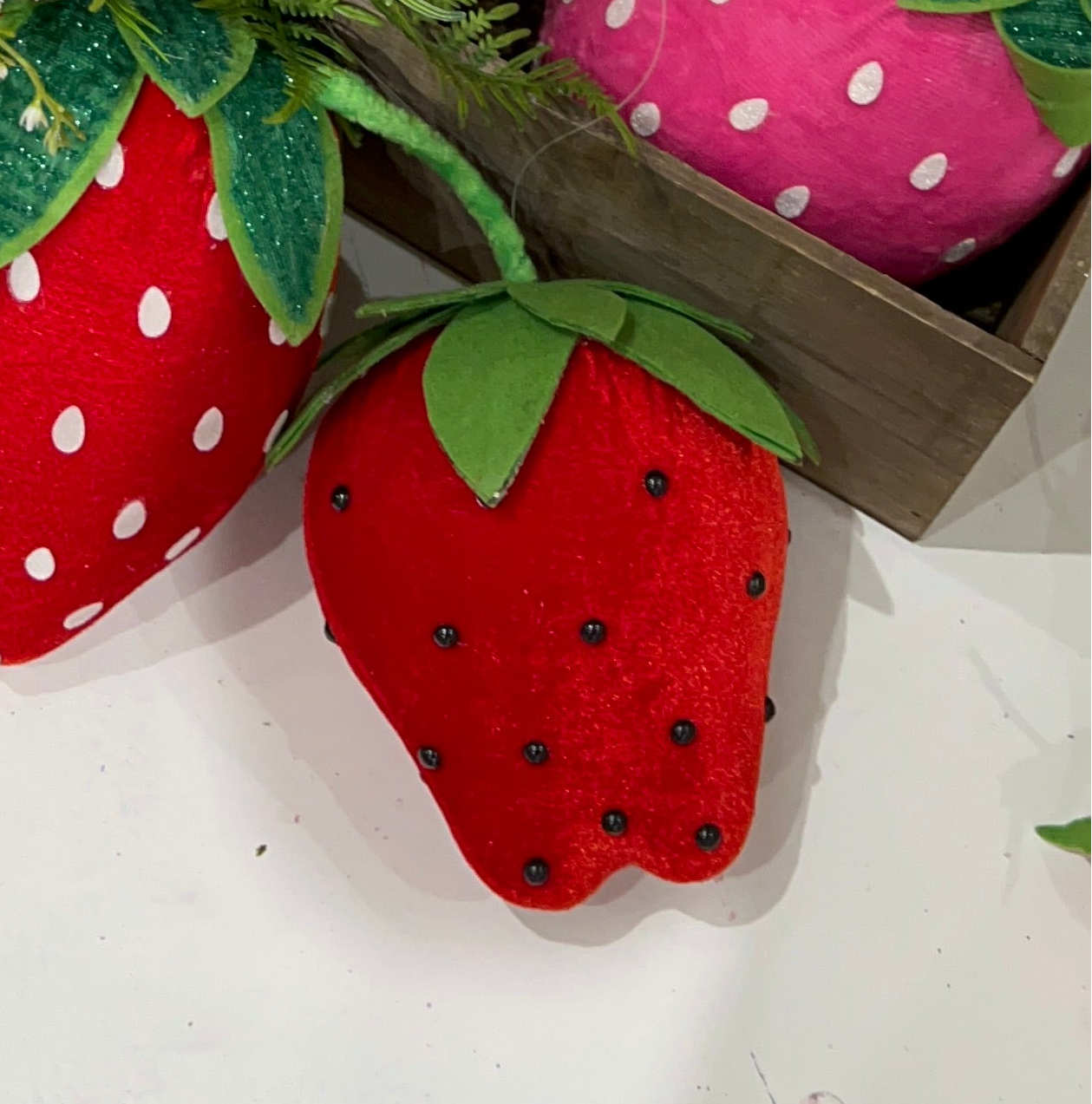 Add a touch of whimsy and charm to your home decor with this 8" Plush Strawberry Wreath Accent. These cute and cuddly accents are sure to brighten up any room and bring a smile to your face! With their soft plush material, these accents are perfect for adding a cozy and playful touch to your space. They also make great gifts for loved ones who appreciate a touch of fun and whimsy in their home. Don't miss out on the opportunity to bring joy and happiness into your home with these adorable accents! 63912RD