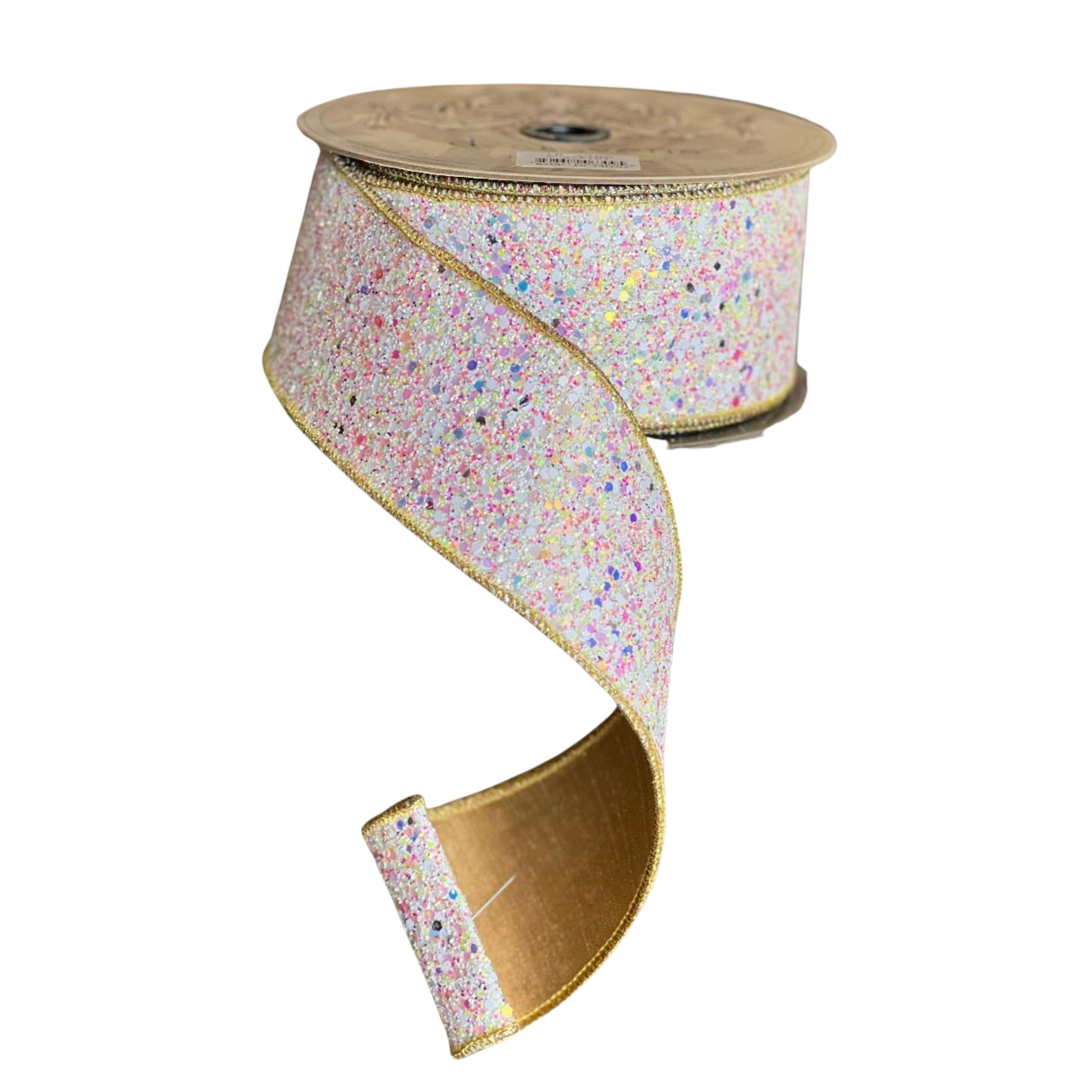 2.5" Sugar Plum Glitter Ribbon: Icy Iridescent (10 Yards)