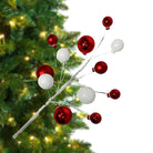 This 16" Elegant Ball Pick features red and white ornament balls! The ornaments come in a shiny finish in three sizes. Use it as a spray or weave the wired arms around pine on garlands, wreaths or trees. The combination of colors will create a stunning centerpiece wherever you choose to display it, or adding a touch of sparkle to any home. DCSP3543RDWH