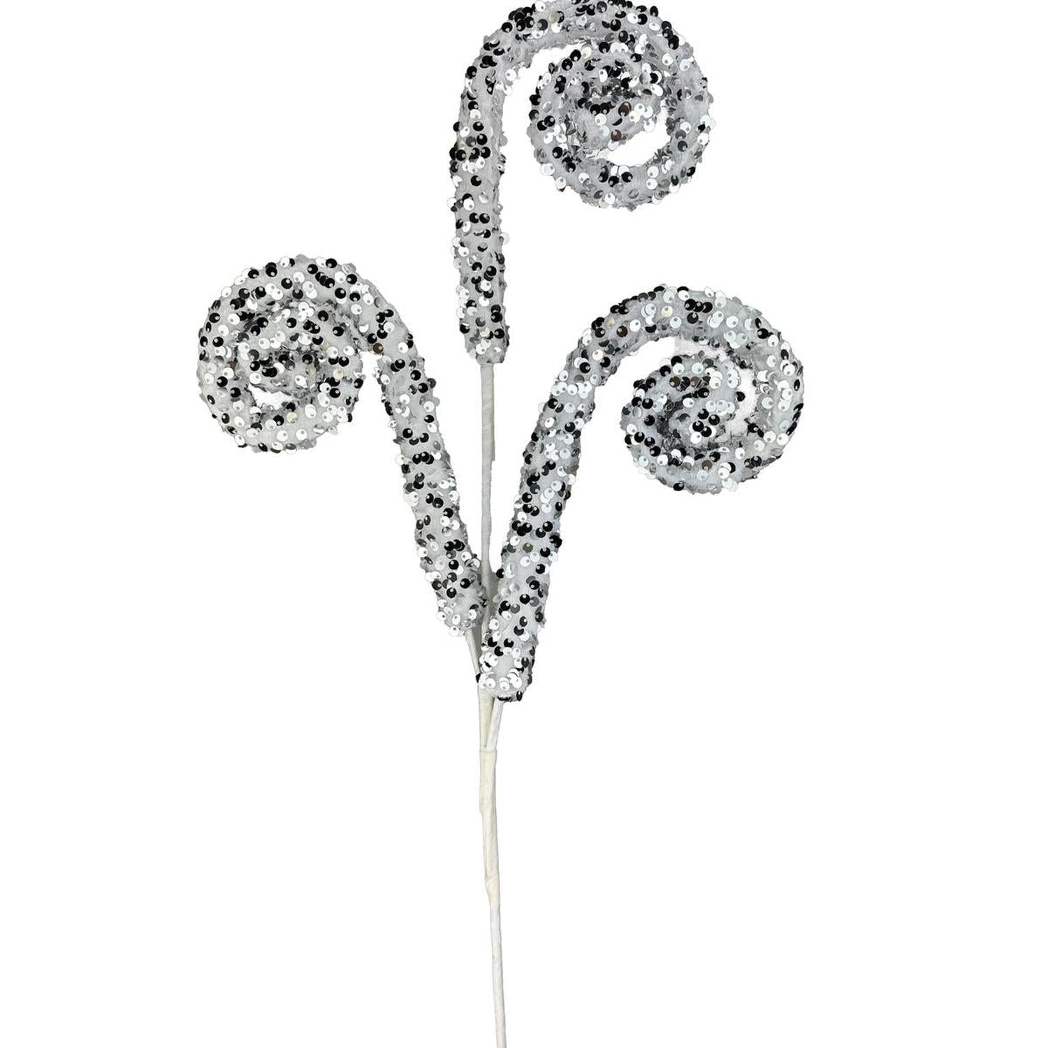 Designed with top quality materials, the 29" Glitter Scroll Curly Spray in Silver is the perfect addition to your holiday decor. With three wired foam tubes wrapped in Silver and covered with eye-catching silver sequins, it's a stylish and versatile choice for Valentine's Day, Christmas, or any other holiday decorating. Add a touch of glamour and sophistication to any event with this exquisite piece. MTX75851SILV