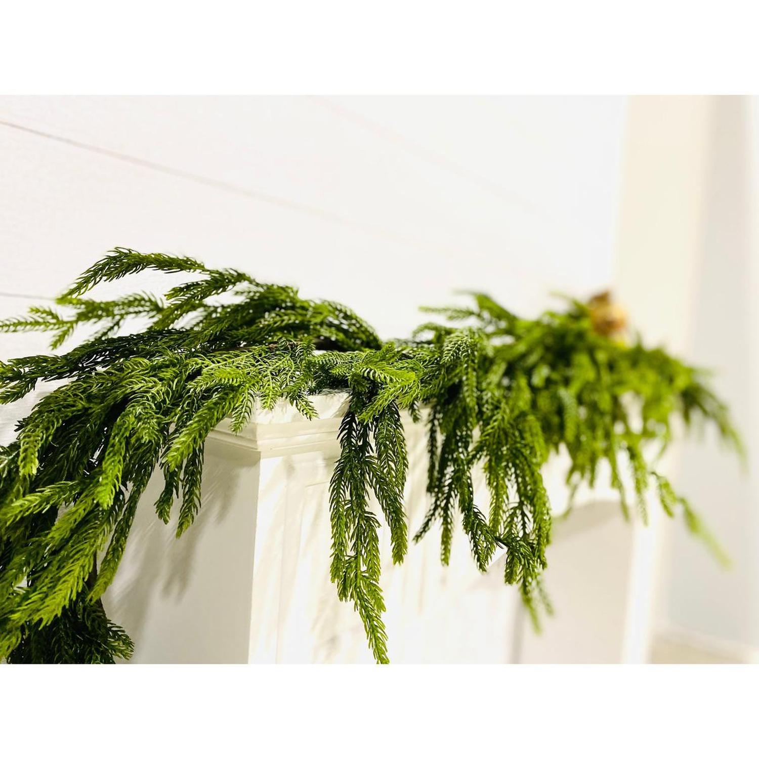 Transform your holiday space effortlessly with our Artificial Real Touch Norfolk Pine Christmas Garland. This 6-foot garland, crafted with lush, realistic Norfolk Pine stems, brings a natural touch of winter to your decor, adding elegance and texture to mantels, tables, or walls. Perfect for creating a festive atmosphere with minimal effort, it offers a timeless winter charm that enhances any holiday setting.