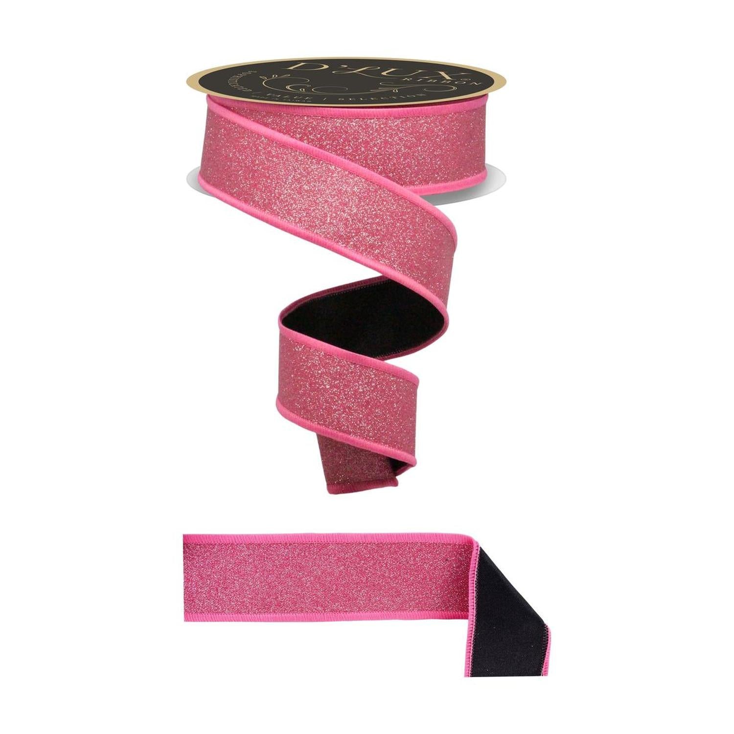 1.5" Fine Glitter Fused Back Ribbon: Fuchsia/Black (10 Yards)
