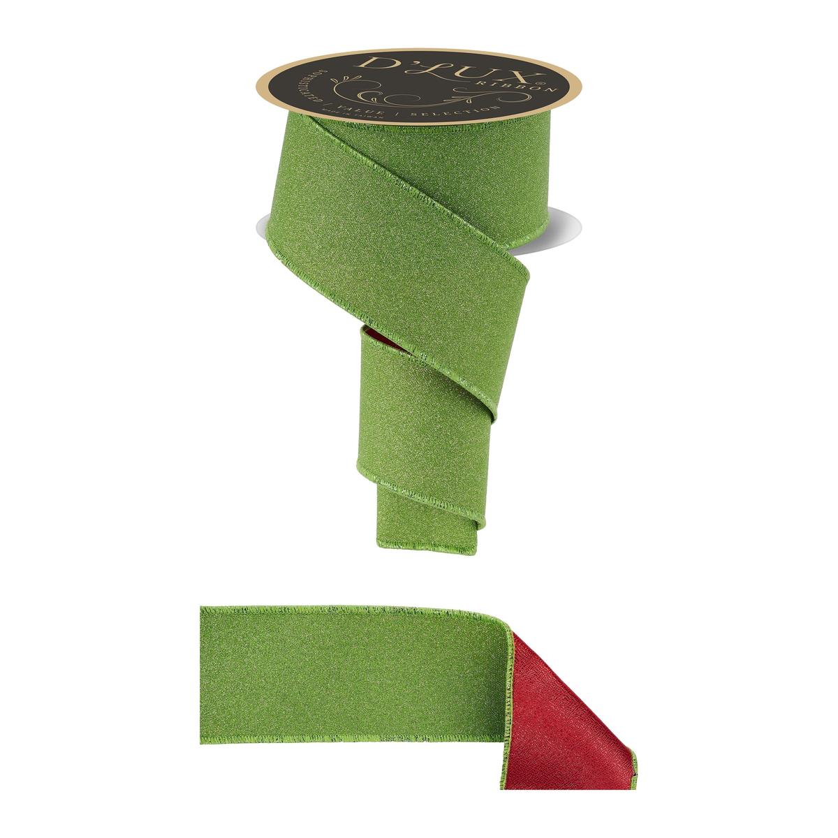 This 2.5" Fine Glitter Fused Back Ribbon: Fresh Green/Red (10 Yards) is perfect for adding a touch of sparkle to your creations! Featuring luxurious fine glitter in a vibrant fresh green color on one side, and a solid red fused backing on the other, this ribbon is a must-have for wreaths, gift wrapping, floral arrangements, and holiday projects. Wired edges make it easy to work with and add a professional finish to your designs. With 10 yards of ribbon, the possibilities are endless! LX3012J7