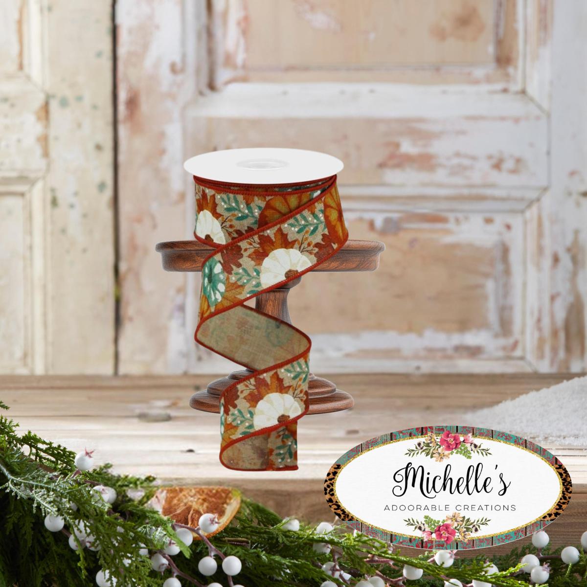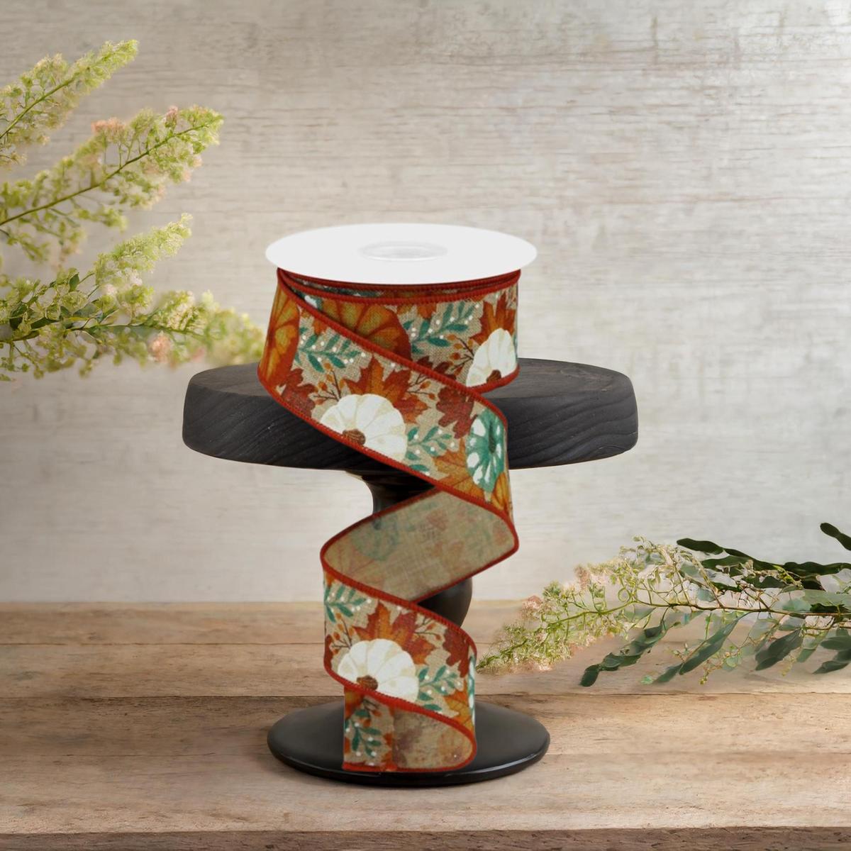 1.5" Pumpkin Foliage Ribbon: Light Tan (10 Yards)