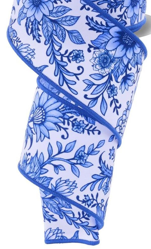 2.5" Chinoiserie Floral Ribbon: Blue (10 Yards)