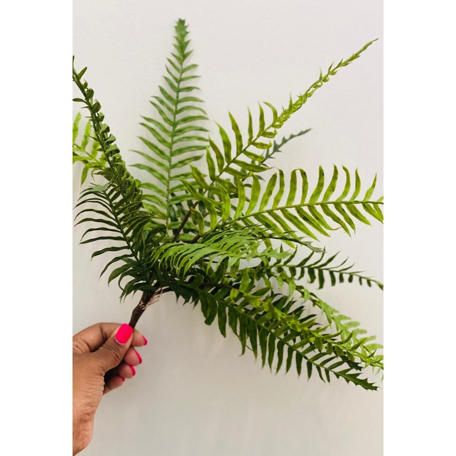 Each piece of our Artificial Real Touch Boston Fern Stems is crafted with advanced "Real Touch" technology, ensuring a remarkably lifelike appearance and feel. These stems not only serve as a stunning addition to any decor but also embody a blend of natural beauty and practical convenience. Perfect for those who appreciate both realistic design and easy maintenance, they effortlessly enhance your space with a touch of fresh, enduring elegance. Sold as a Bundle of 4 .