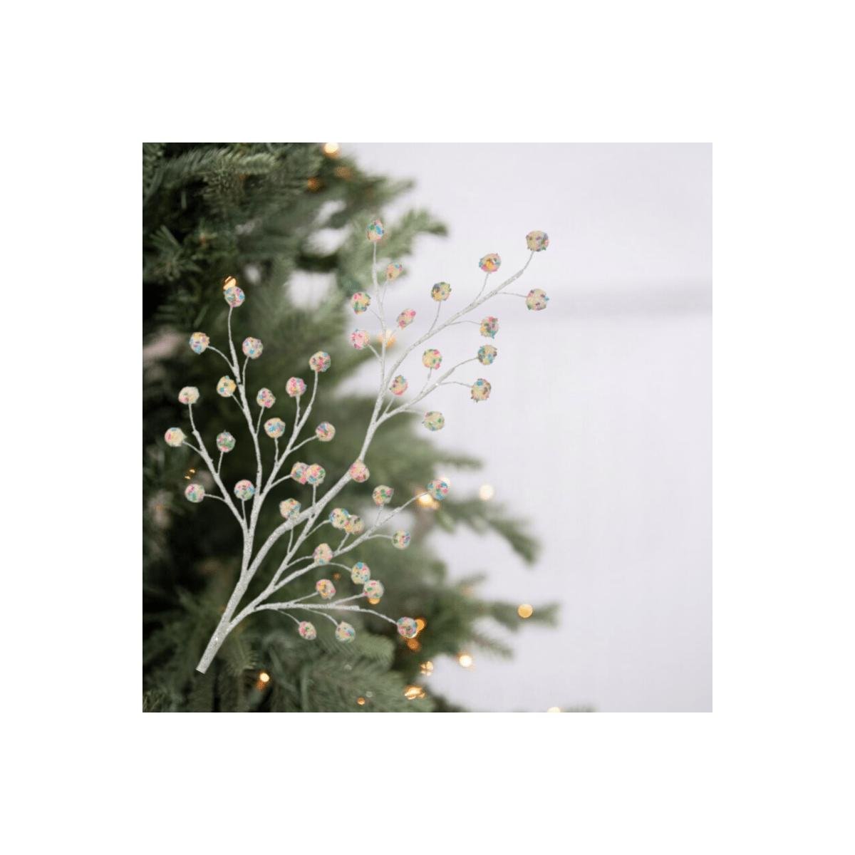 Add this sweet Confection Candy Christmas Spray into your Christmas decor this holiday season! It features a white stem with pastel multi color candy, delicious lavender, yellow, pink, and winter green, confection candy stuck all over it! This is perfect for an outdoor themed tree, a kitchen tree, or even just a sweet treat themed tree! Poke a few in a wreath or garland to top everything off! MTX64465