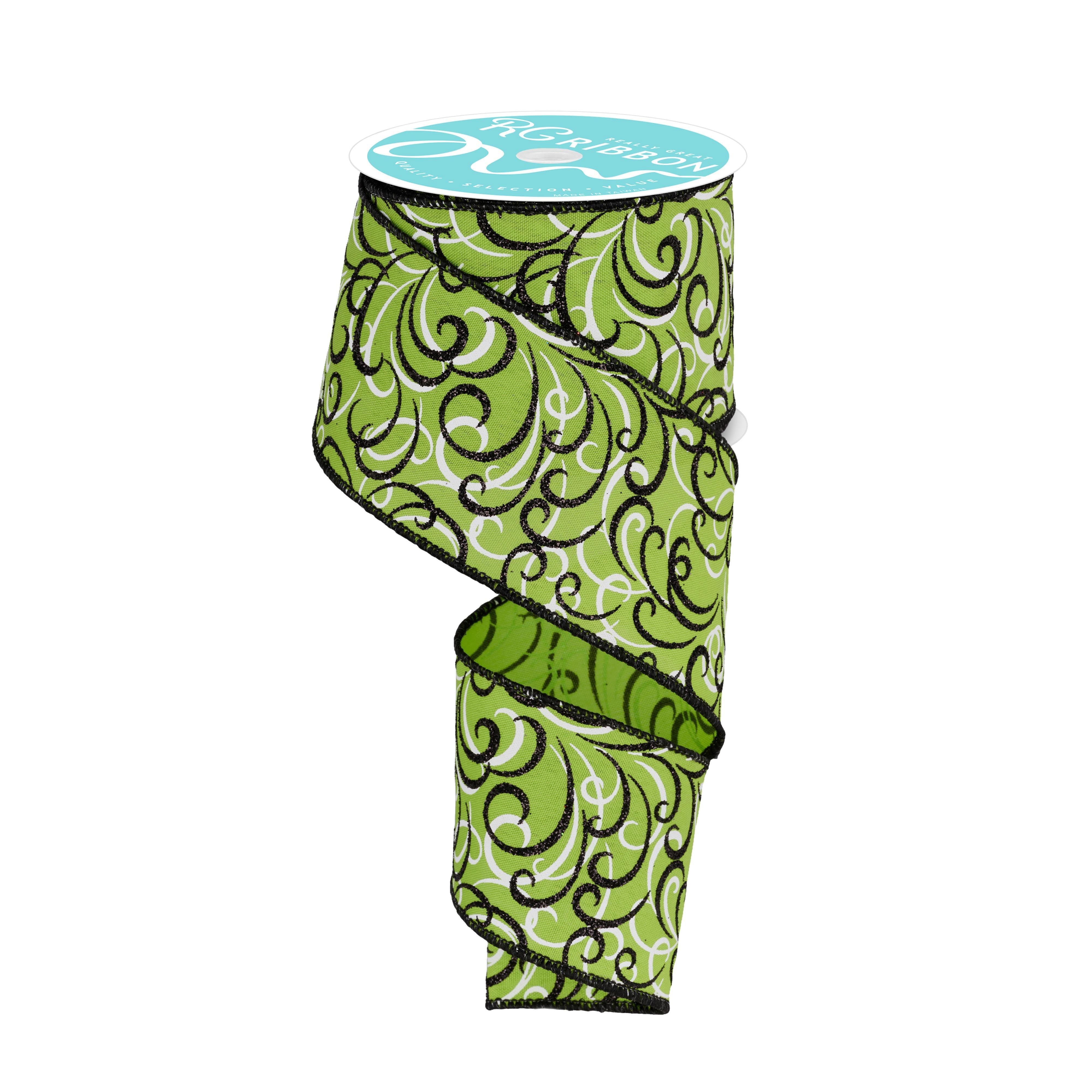 2.5" Multi Swirls Glitter Ribbon: Lime Green/Black (10 Yard)