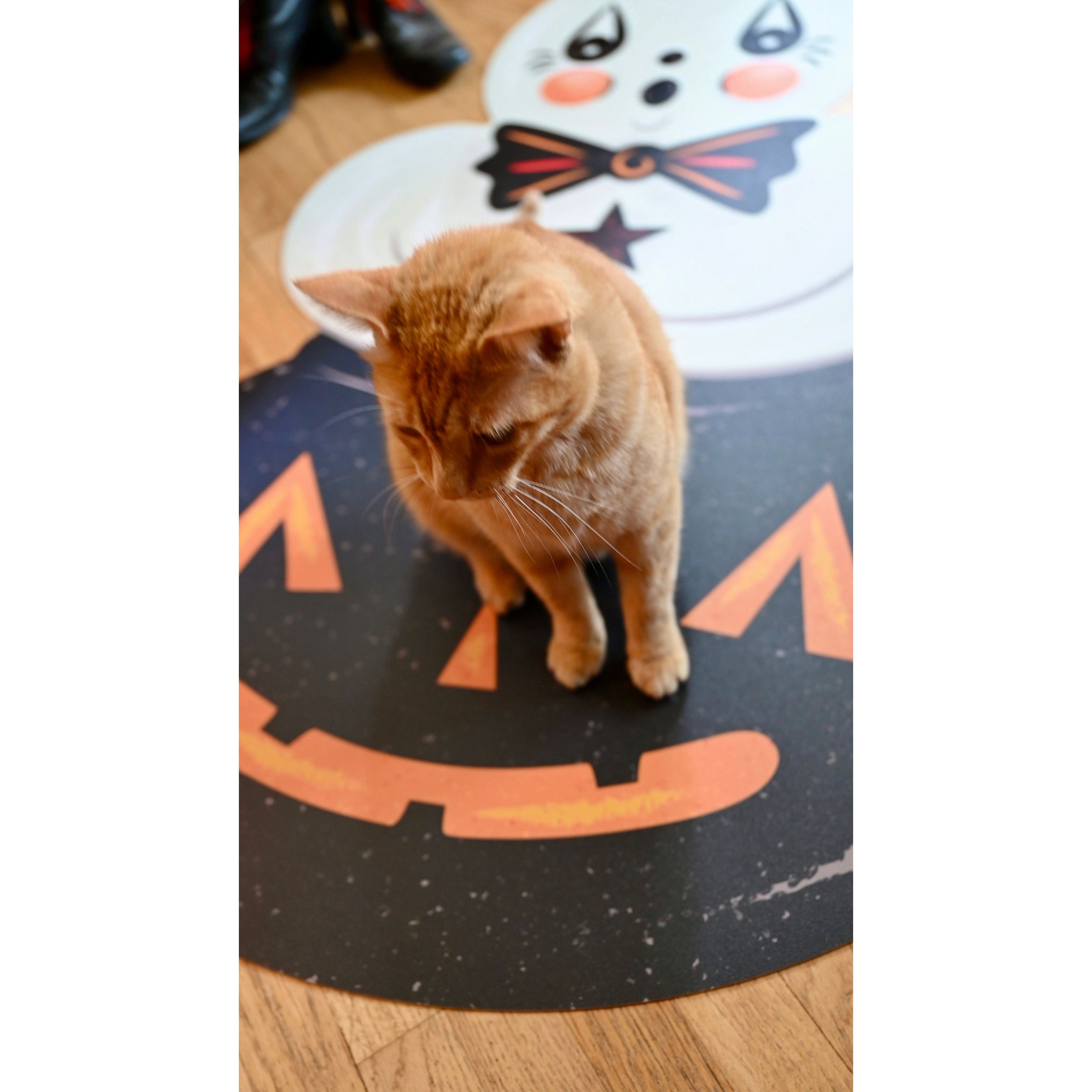 Behold! A ghastly yet glorious creation by the talented Miss Johanna Parker! We proudly present an exclusive line of Halloween floor coverings, available in a unique die-cut ghostie shape or the quintessential vintage Halloween harlequin pattern, tailored to fit your spooky sanctuary.