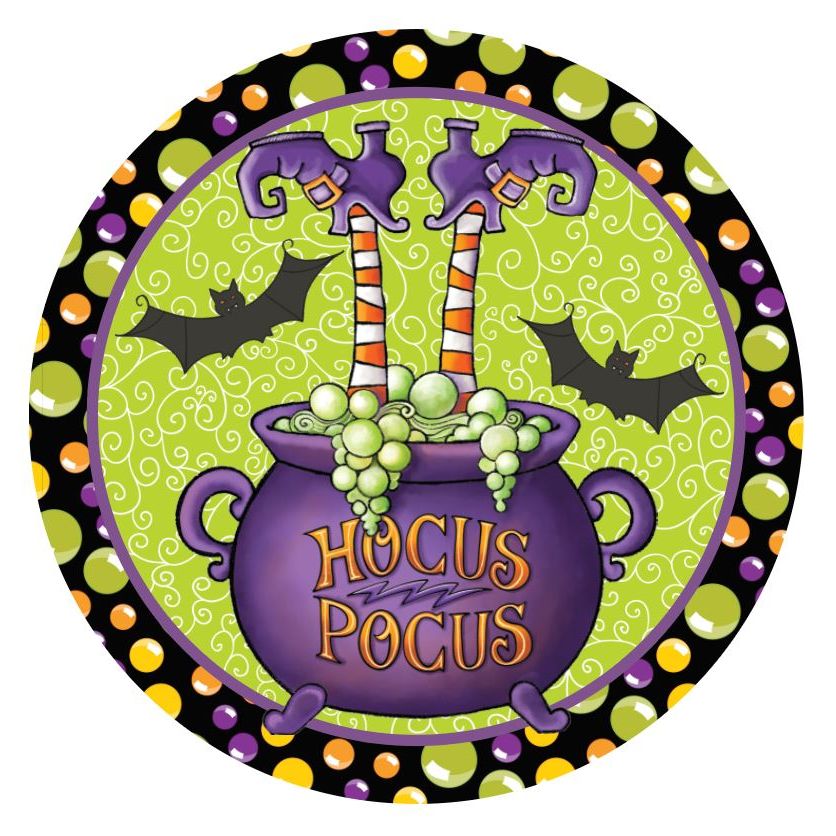 Illuminate your Halloween decor with this versatile Hocus Pocus Witch Leg Cauldron Sign. Crafted with sturdy aluminum, it comes in three sizes for a customizable touch to your home decorations. Whether as a wreath accent, door hanger, wall art, or simply as a Halloween themed decoration, this sign is the perfect way to add a touch of spooky charm to any space. ***Please note color shades may appear slightly different in person depending on your computer monitors resolution. Signs Do NOT have holes. **Decorative Display Stand is NOT for sale & NOT included is just an example of how to display.