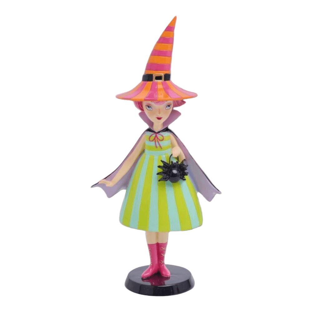 Add a splash of Halloween charm to your seasonal decor with the 10in Witch with Orange Hat by December Diamonds. This playful resin figure stands 10 inches tall and features a stylishly spooky witch dressed in black, accented with a bold orange hat that adds a pop of festive color. Her whimsical pose and finely detailed features give her a fun and mischievous personality-perfect for brightening up mantels, shelves, or tabletop displays. Whether you're decorating for a party or building your Halloween collection, this quirky witch brings just the right mix of magic and mischief to any space.