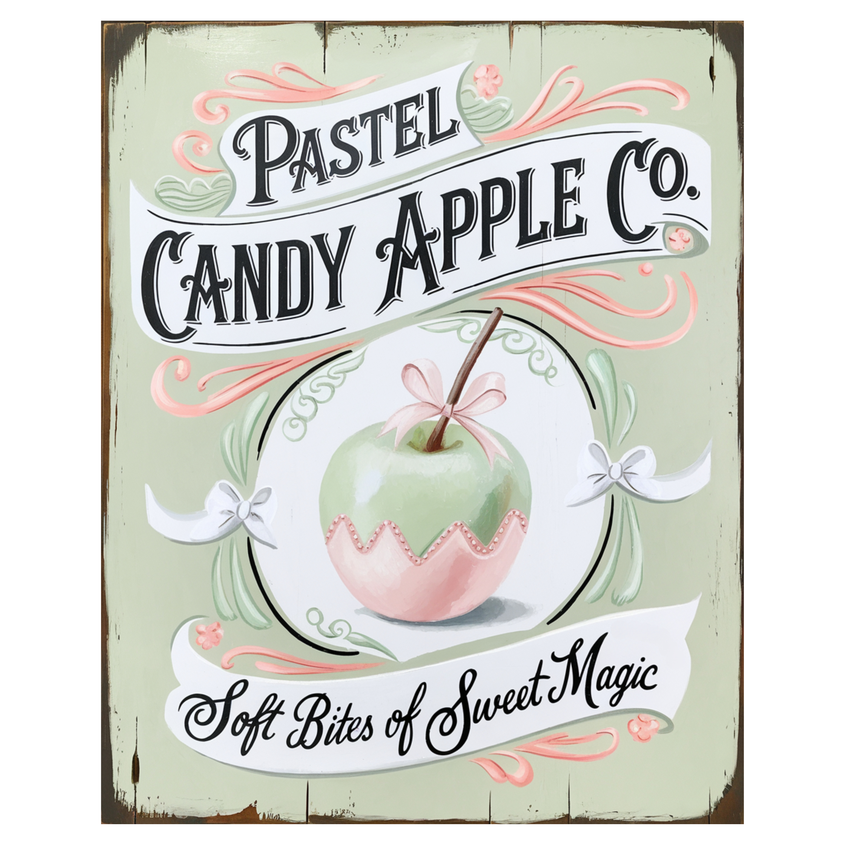 Transform your space with this enchanting Pastel Candy Apple Halloween Sign, a delightful twist on traditional spooky decor. Crafted from durable UV-coated aluminum, this charming 10" x 8" piece features a whimsical design centered around a soft green apple dipped in delicate pink icing, accompanied by the magical phrase "Soft Bites of Sweet Magic." The vintage-inspired typography and pastel color palette create an ethereal aesthetic that perfectly balances sweetness with subtle Halloween mystique. The sign's lightweight construction makes it incredibly versatile - display it as a wreath accent, door hanger, or wall decoration to add a touch of whimsy to any room. Decorated with graceful flourishes and soft floral elements in mint green and blush pink, this piece brings a fresh perspective to seasonal decor. The weathered background adds character while maintaining the sign's dreamy appeal, making it a standout piece that bridges classic vintage style with contemporary charm. Perfect for those who prefer their Halloween decorations with a dash of sugar rather than spice.