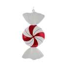 This Kurt Adler large red and white peppermint candy ornament is a festive addition to any home or office holiday décor. It is glittered for a festive look and can be hung in a multitude of places for an extra sweet holiday look. Part of our Peppermint and Treats Collection. J8235