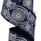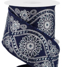 2.5in Deluxe Wavy Floral Ribbon: Navy/Silver (10 Yards)