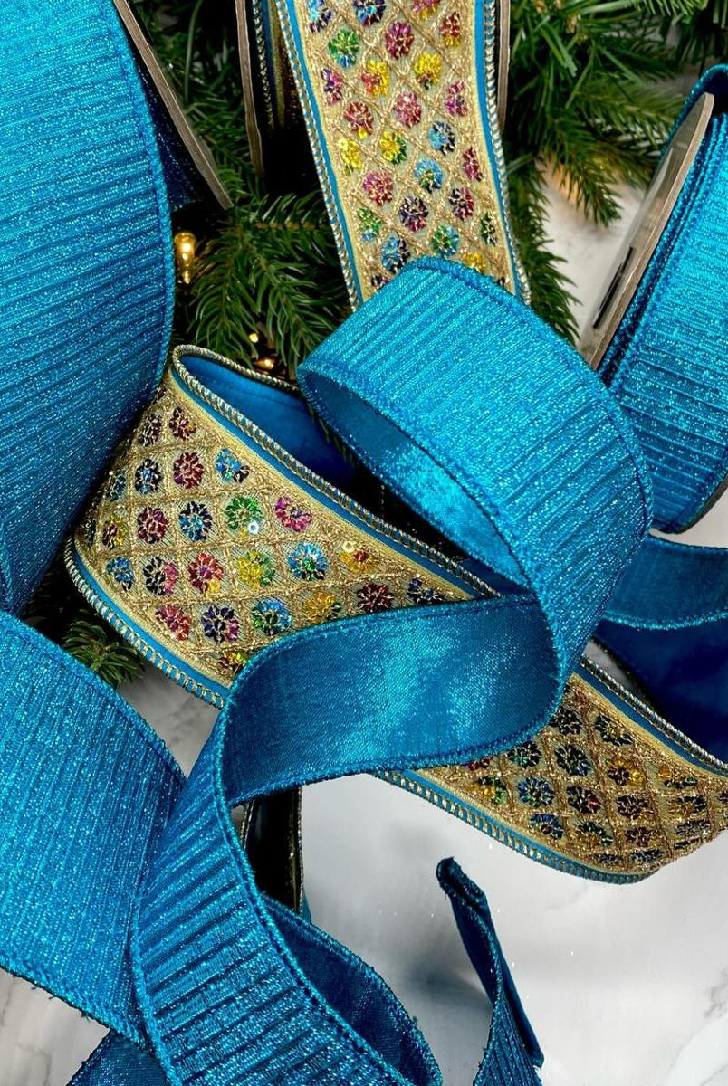 Our Merry Hues Jewel Tone Collection of ribbons and ornaments have rich hues designed to catch the eye and elevate your holiday decor. They come in various saturated shades, including emerald green, blue, sapphire, and other colors.