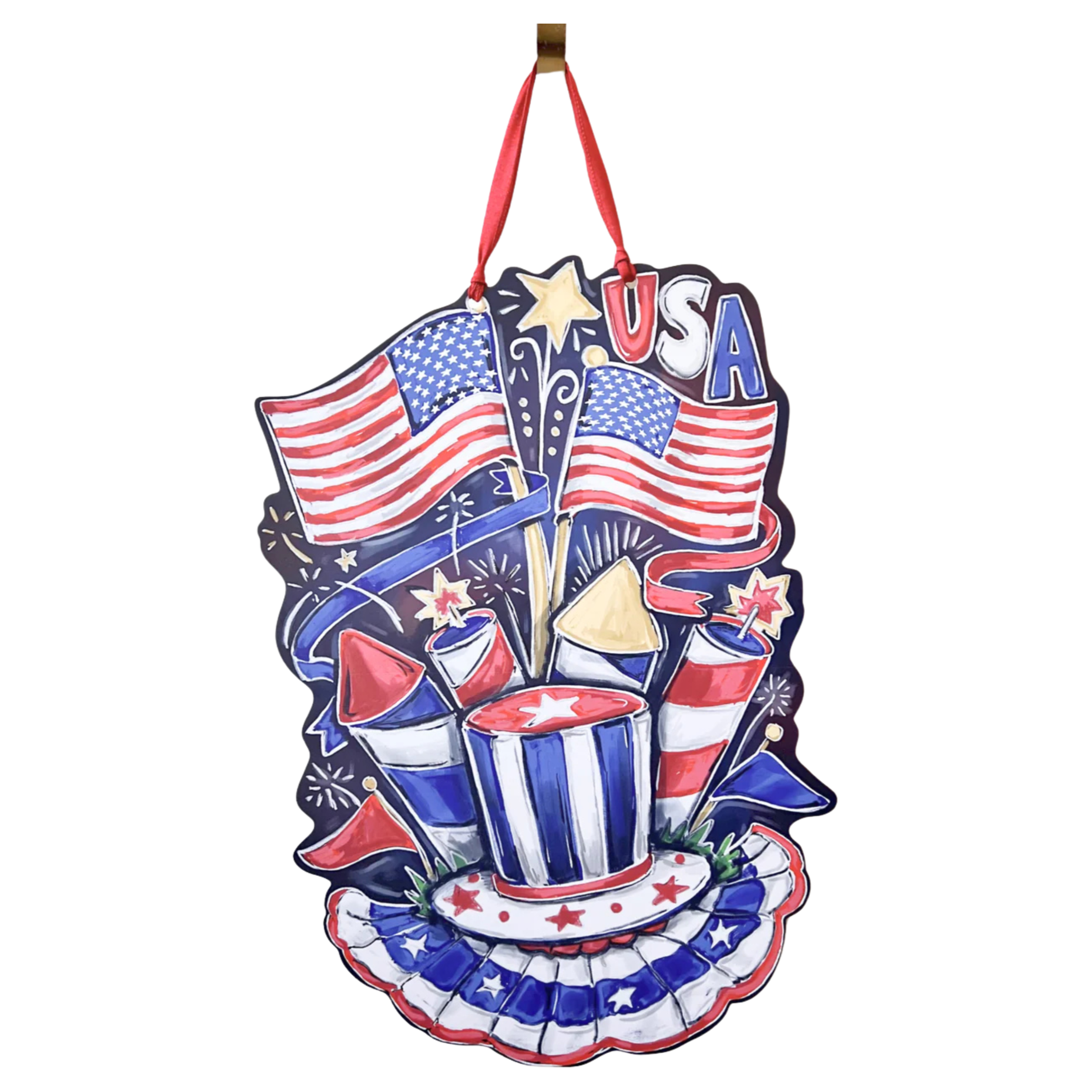 Elevate your Fourth of July festivities with our standout door hanger! Celebrate America's independence in style with this eye-catching accessory that welcomes guests with a touch of red, white, and blue flair!