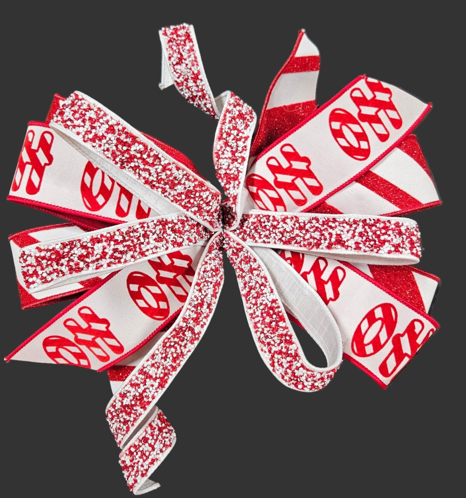 Red White Candy Cane Ho Ho Ho Bow