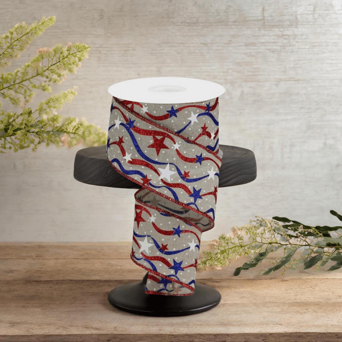 Add a touch of national pride to your crafts with this stunning 2.5" stars and wavy stripes royal canvas ribbon in natural color. Use it to create beautiful bows, wreaths, or add a special touch to gift or floral arrangements. Infuse your projects with a sense of patriotism and show your love for your country! RGA167601