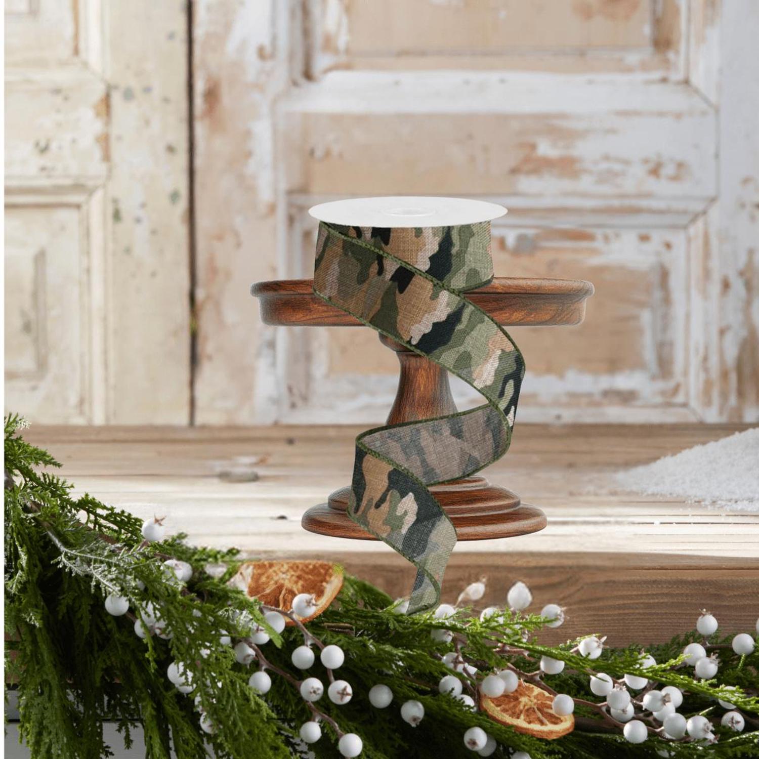 Get ready to take your decor to the next level with our 1.5" Camouflage on Royal Ribbon! The wired edge adds a touch of elegance while the iconic camouflage pattern brings a rugged and natural feel to any setting. Perfect for any hunting or outdoors-inspired theme, this versatile ribbon seamlessly blends in and adds a unique touch to your display. RG1250