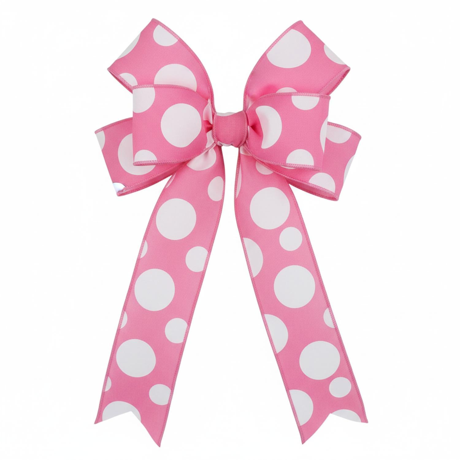 Get wrapped up in decorating with the best, once you use this 1.5" Giant Three Size Polka Dot Ribbon: Pink & White (10 Yards)! This ribbon features a pink base, with white dots of different sizes throughout to give it an unmistakable appeal! As this ribbon includes a wired edge, it will be useful in any creative adaptation you find fitting! Add additional ribbon, sprays or signs to create the perfect display. RGB114722