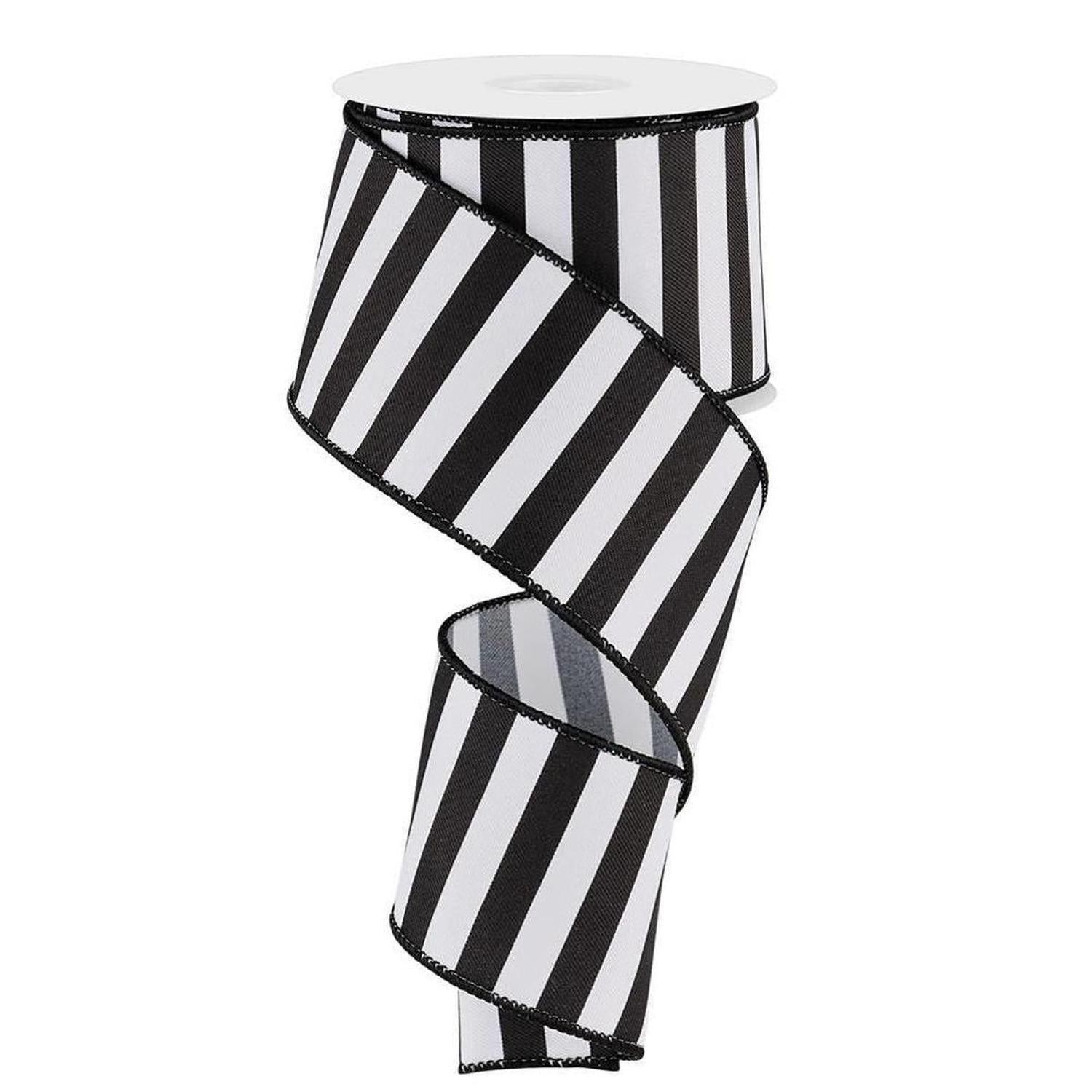 This 2.5 inches x 10 yard roll of wired edge ribbon is perfect for adding a touch of classic elegance to your gift wrapping, wedding decorations, wreaths, floral arrangements, and crafting projects. The horizontal black and white stripes create a timeless and versatile pattern that complements a wide range of styles and color schemes. The wired edge allows you to shape and manipulate the ribbon with ease, enabling you to create beautiful bows, curls, and embellishments. Whether you're looking to add a sophisticated finishing touch to a present or incorporate a striking accent into your home decor, this ribbon is an excellent choice. Its high-quality construction ensures durability and long-lasting beauty. RGE1785X6
