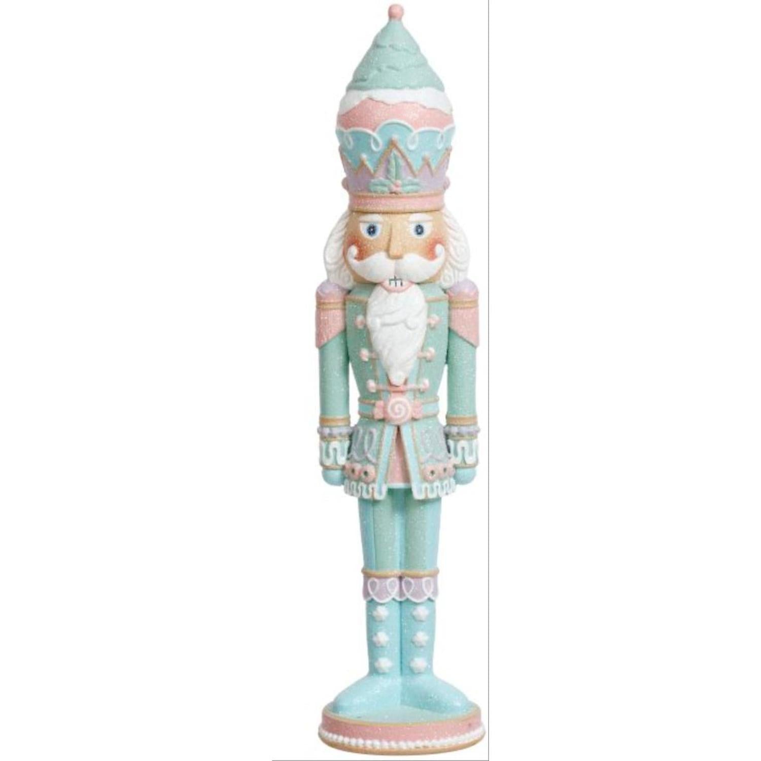 Imagine two charming nutcrackers stepping out of a pastel fantasy—these Viv! Christmas figures have replaced their traditional staffs with candy canes, sweets, and ice cream, ready to add a delightful touch to your holiday decorations. Painted in gentle hues of pink, mint, and blue, each 46 cm tall nutcracker is meticulously detailed with frosted edges, candy embellishments, and shimmering glitter. One holds a cream-white Christmas tree sprinkled with colorful toppings, while the other sports a cupcake hat and pink candy buttons on his outfit. Every detail is carefully hand-finished and finished with a soft gloss, as if they’ve just come from a whimsical candy shop. Sold Individually 72-46610