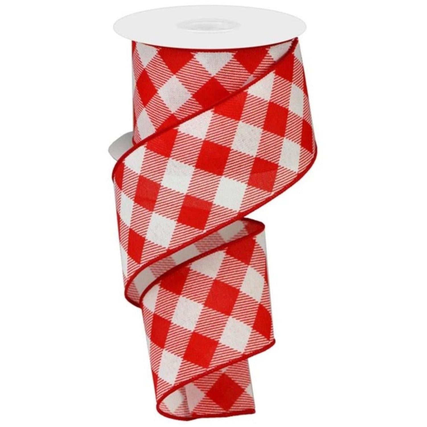 2.5" Check and Diagonal Stripe Royal Ribbon: Red (10 Yards)