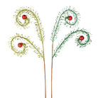 Add a super fun texture to your decor with these 28" Glittered Feather Sprays in Dark Green! Each one features feather shape covered in glitter and topped with a red glitter ball! Sold Individually Dimensions: 28". F4106733