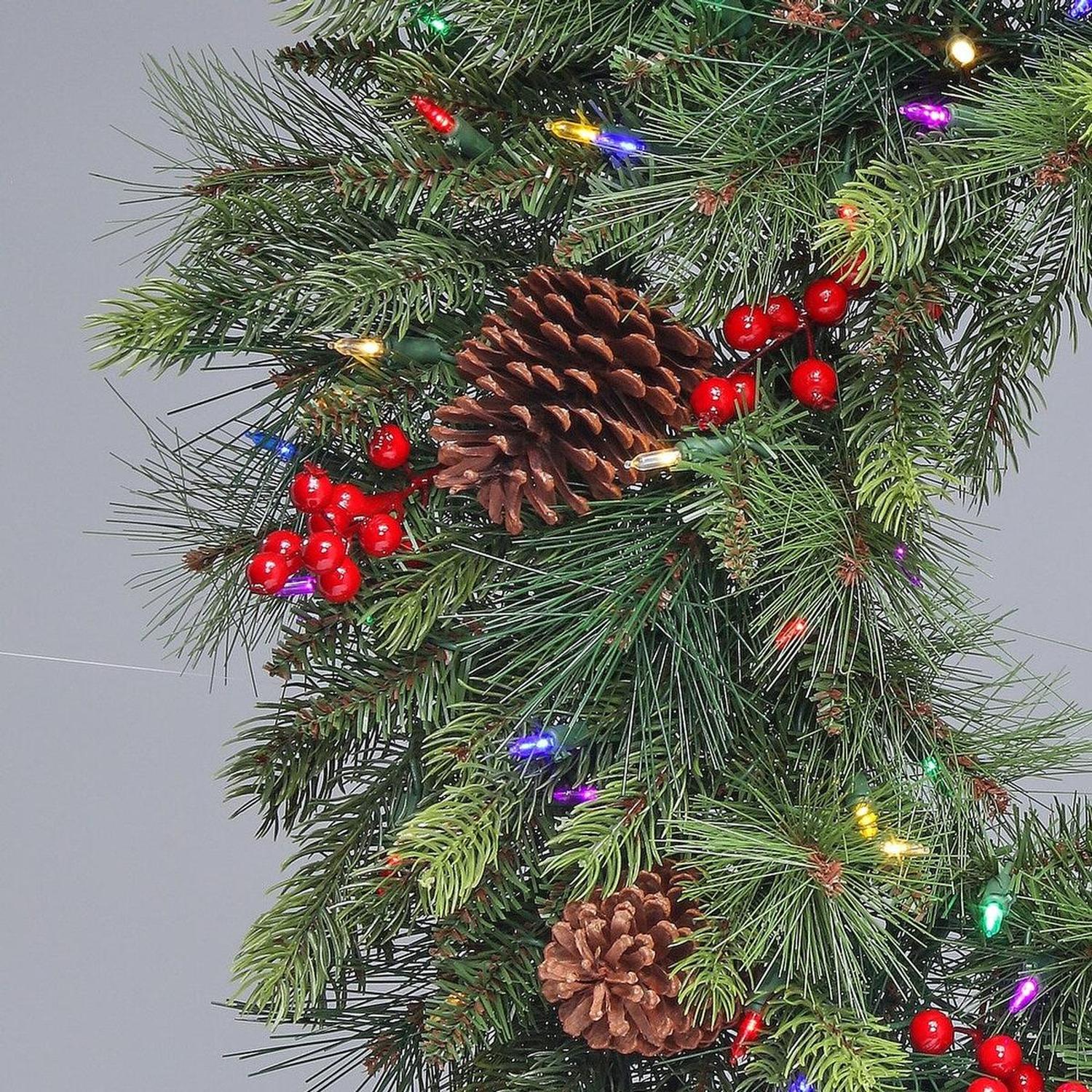 Elevate your holiday decor with the 30" LED Forrest Berry Fir Wreath. Featuring 207 carefully crafted tips, this wreath boasts a full and vibrant look, perfect for creating a cozy and festive atmosphere. Made from high-quality PVC, the lifelike branches, pinecones, and berries replicate the beauty of a real Fir tree. Adorned with 150 energy-efficient LED lights, it provides a warm glow, enhancing any space with a natural touch. The versatile design allows for easy customization with your favorite ornaments, ribbons, or bows. Plus, with a convenient wire base, this wreath can be easily hung on your front door, mantels, or walls. No mounting tools required. Share the holiday spirit with friends and family with this delightful piece! MTX66077L