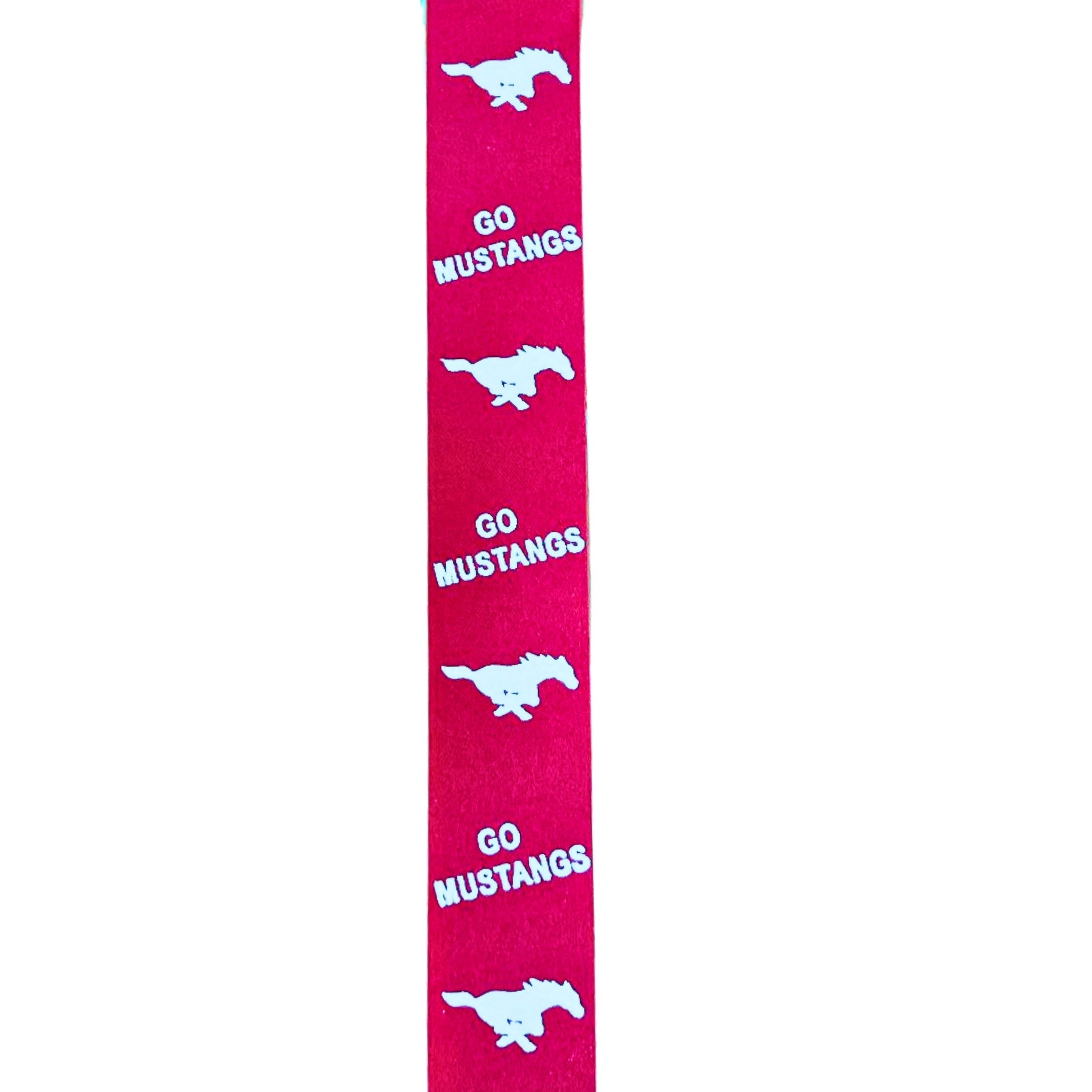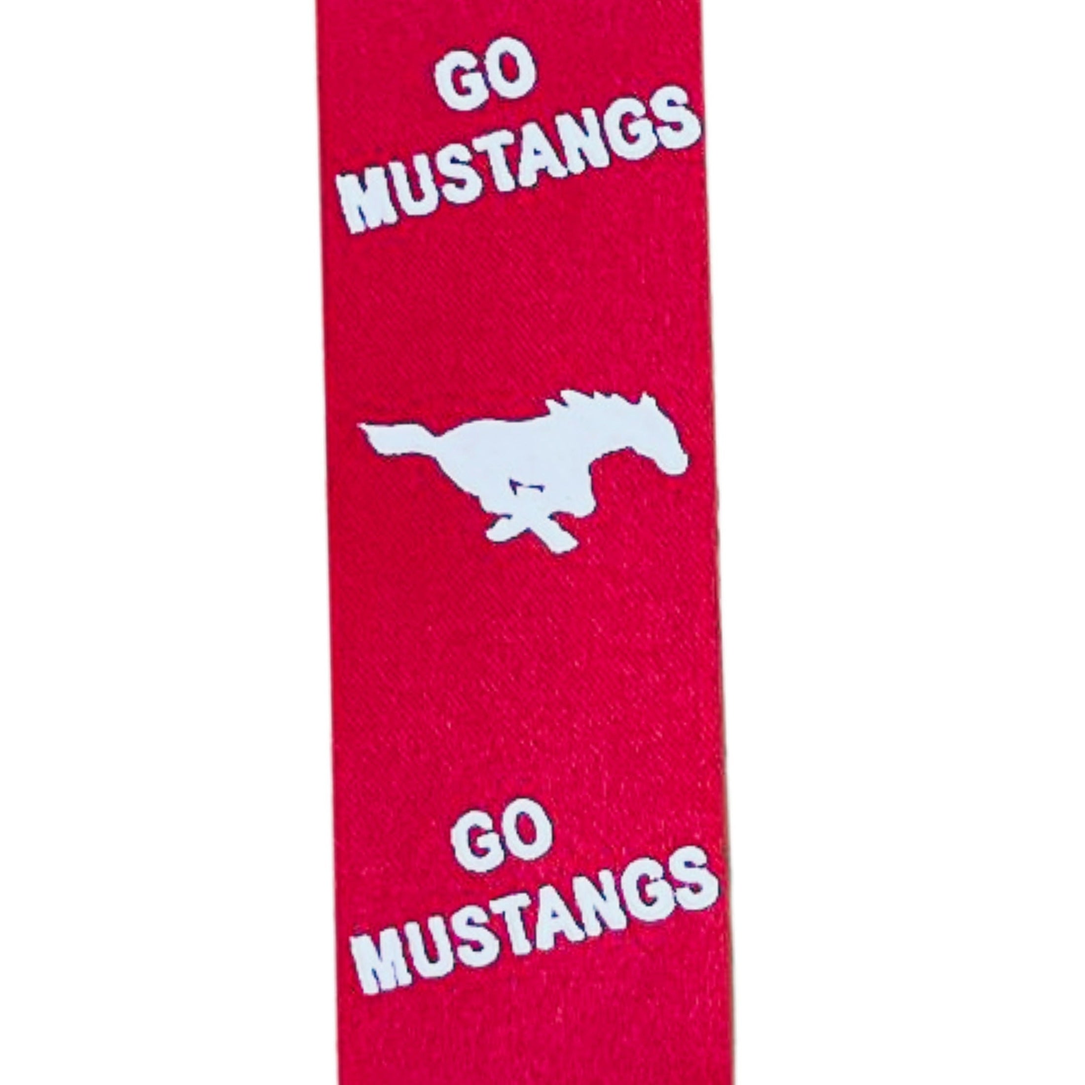Go Mustangs Homecoming Ribbon: (Red/White), Size 9