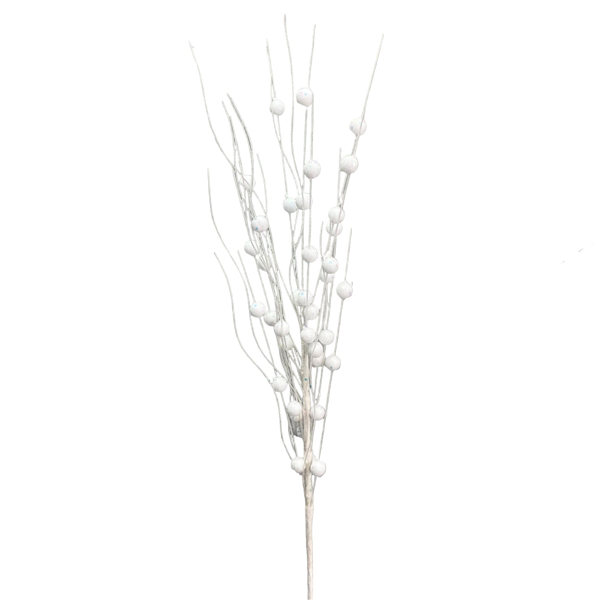 Add some shimmer and shine to your holiday decor with this White Glitter Ball Spray! At 25" long, this spray is perfect for adorning Christmas trees, wreaths, garland, and even table tops. The white color adds a touch of elegance while the glitter brings a playful sparkle. Let this spray bring some festive fun to your home this holiday season! DCSP2062WH
