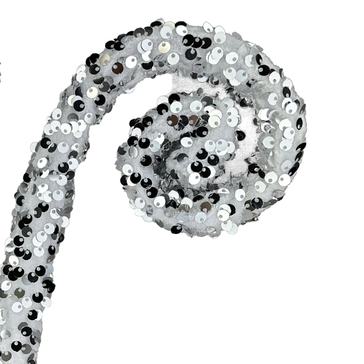 Designed with top quality materials, the 29" Glitter Scroll Curly Spray in Silver is the perfect addition to your holiday decor. With three wired foam tubes wrapped in Silver and covered with eye-catching silver sequins, it's a stylish and versatile choice for Valentine's Day, Christmas, or any other holiday decorating. Add a touch of glamour and sophistication to any event with this exquisite piece. MTX75851SILV