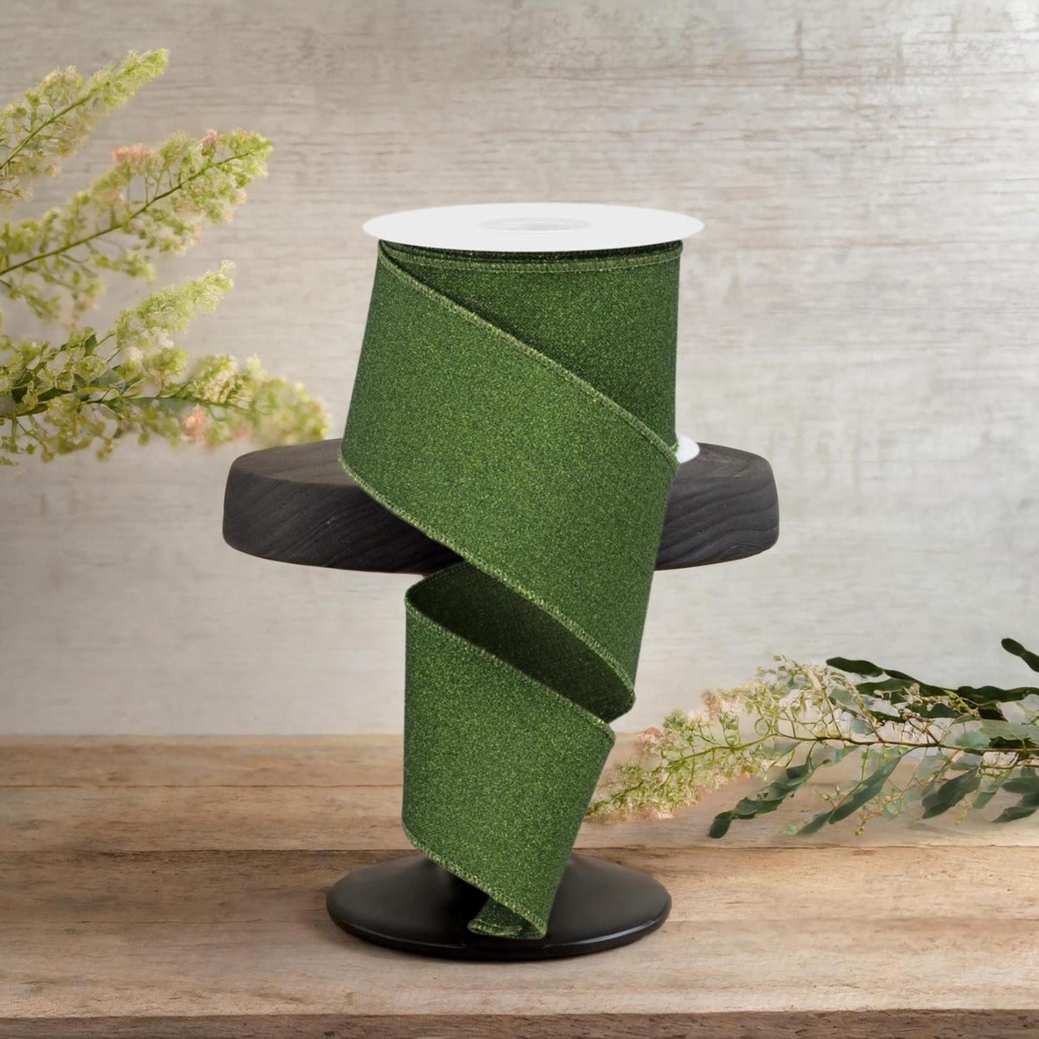 2.5" Fine Glitter on Royal Ribbon: Moss Green (10 Yards)