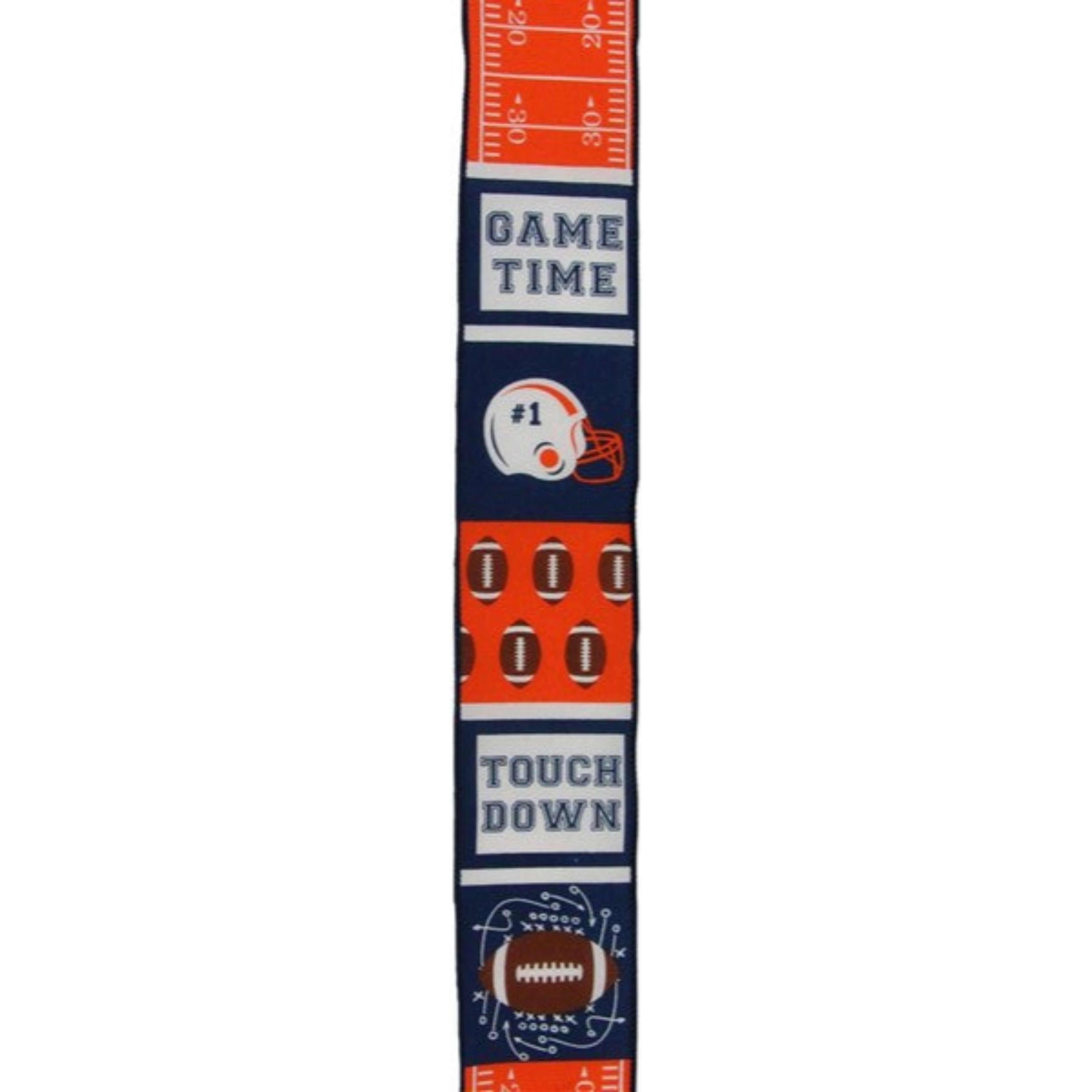 2.5" Football Block Pattern Ribbon: Navy/Orange (10 Yards)