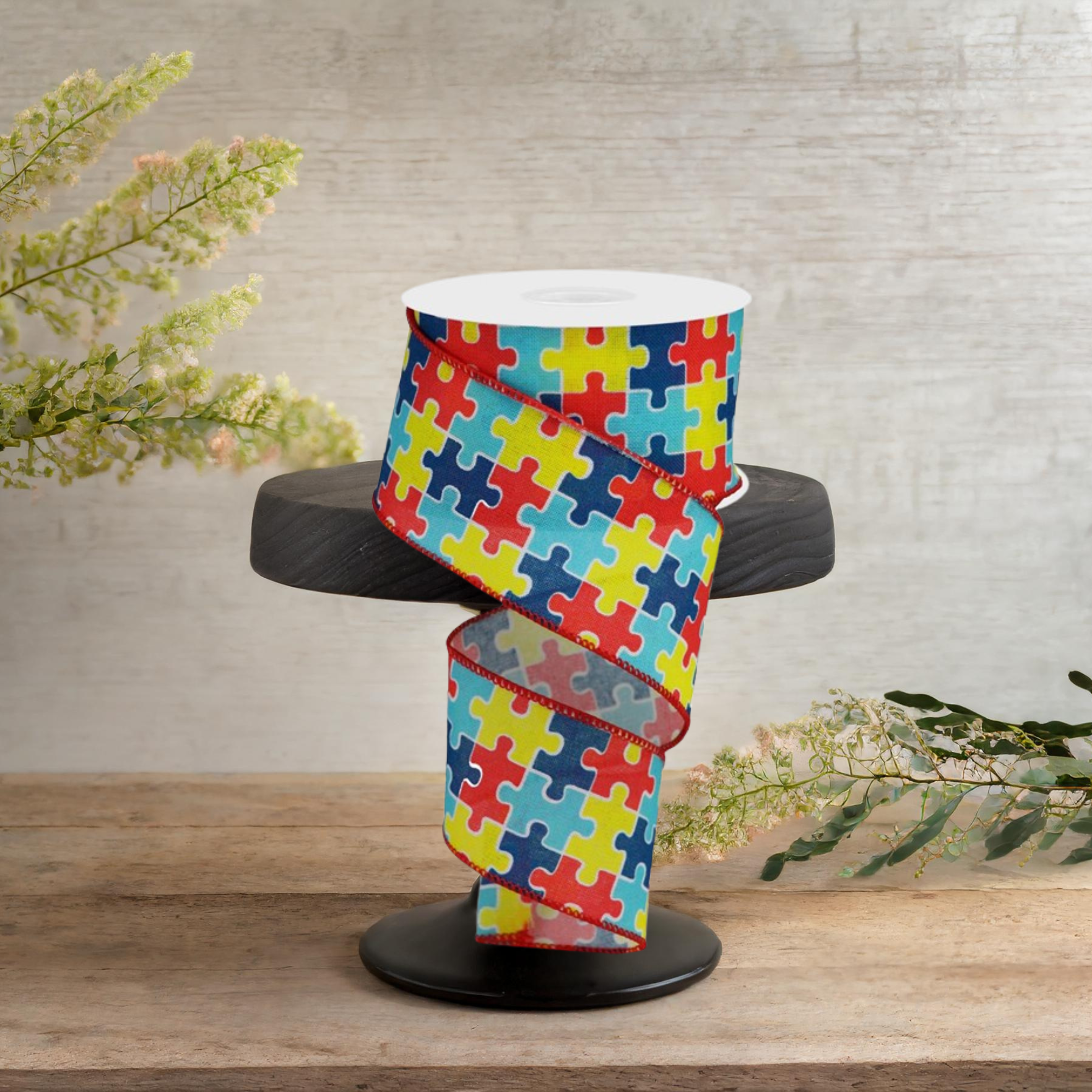 Made with high-quality materials and vibrant colors, this 2.5" Puzzle Piece Royal Ribbon is a perfect choice for showing your support for Autism Awareness. The wired edges give it an elegant touch, making it stand out from other ribbons. With red, blue, yellow, and teal, it's a visually striking way to raise awareness and show your support. RGA1523W5