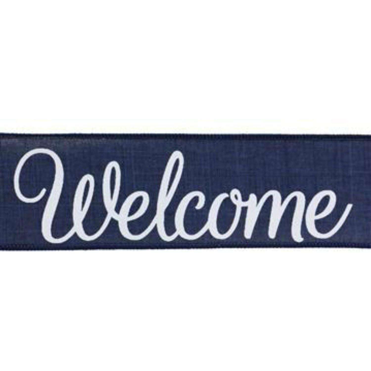 Greet your guests with this marvelous 2.5" Welcome Royal Ribbon: Navy Blue (10 Yards)! This ribbon features a sewn wired edge, and features lovely white script against a navy blue base. Use this ribbon in a wreath display, coupled with a decorative sign, to create a show-stopping piece! RGA11241