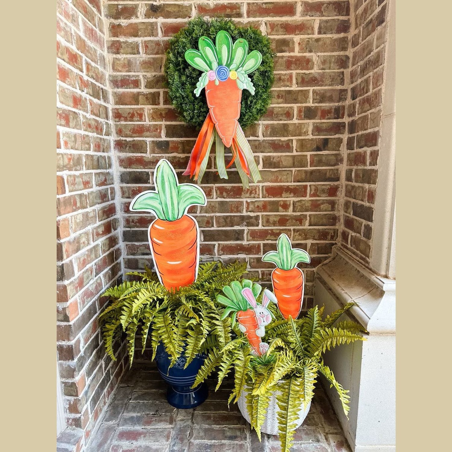 Large Metal Edgy Carrot from The Round Top Collection brings rustic charm to your seasonal décor. This versatile piece features three display options—use the built-in easel for tabletop styling, hang it on your wall, or stake it into garden beds and planters. Perfect for spring arrangements, farmhouse displays, or gift-giving to craft enthusiasts who love distinctive metal accents.