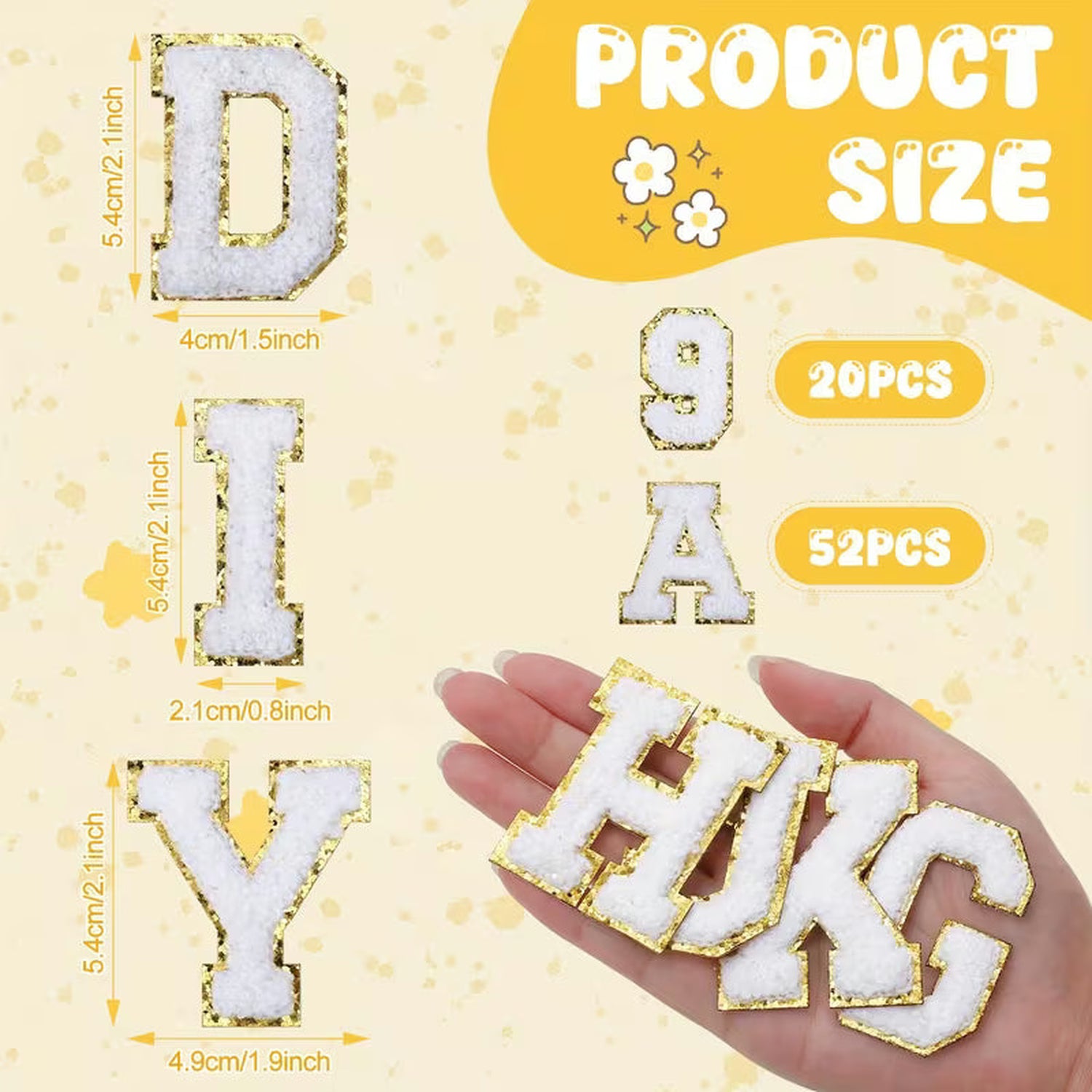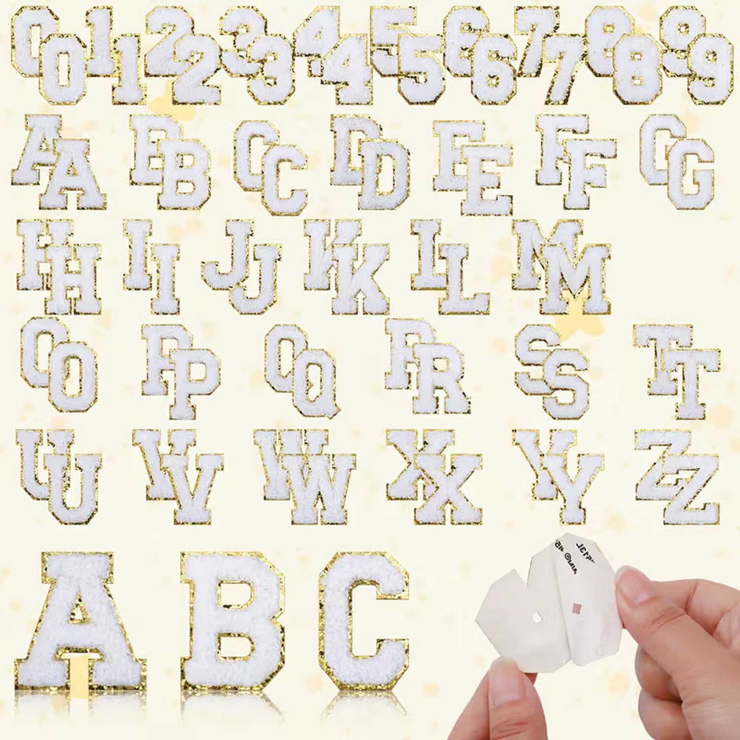 These high quality self adhesive chenille letter patches are easily applied to bags, cloths, backpacks, hats, stockings, ect. by tear off the protective back film and easily sticking anywhere.