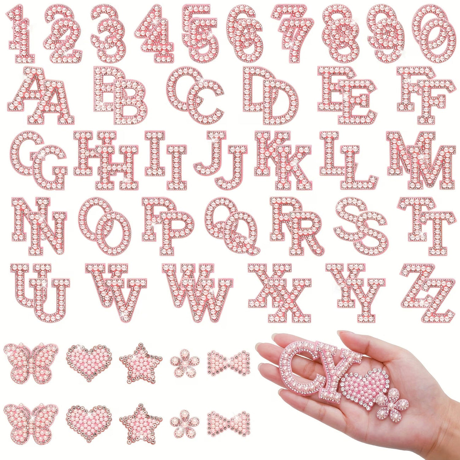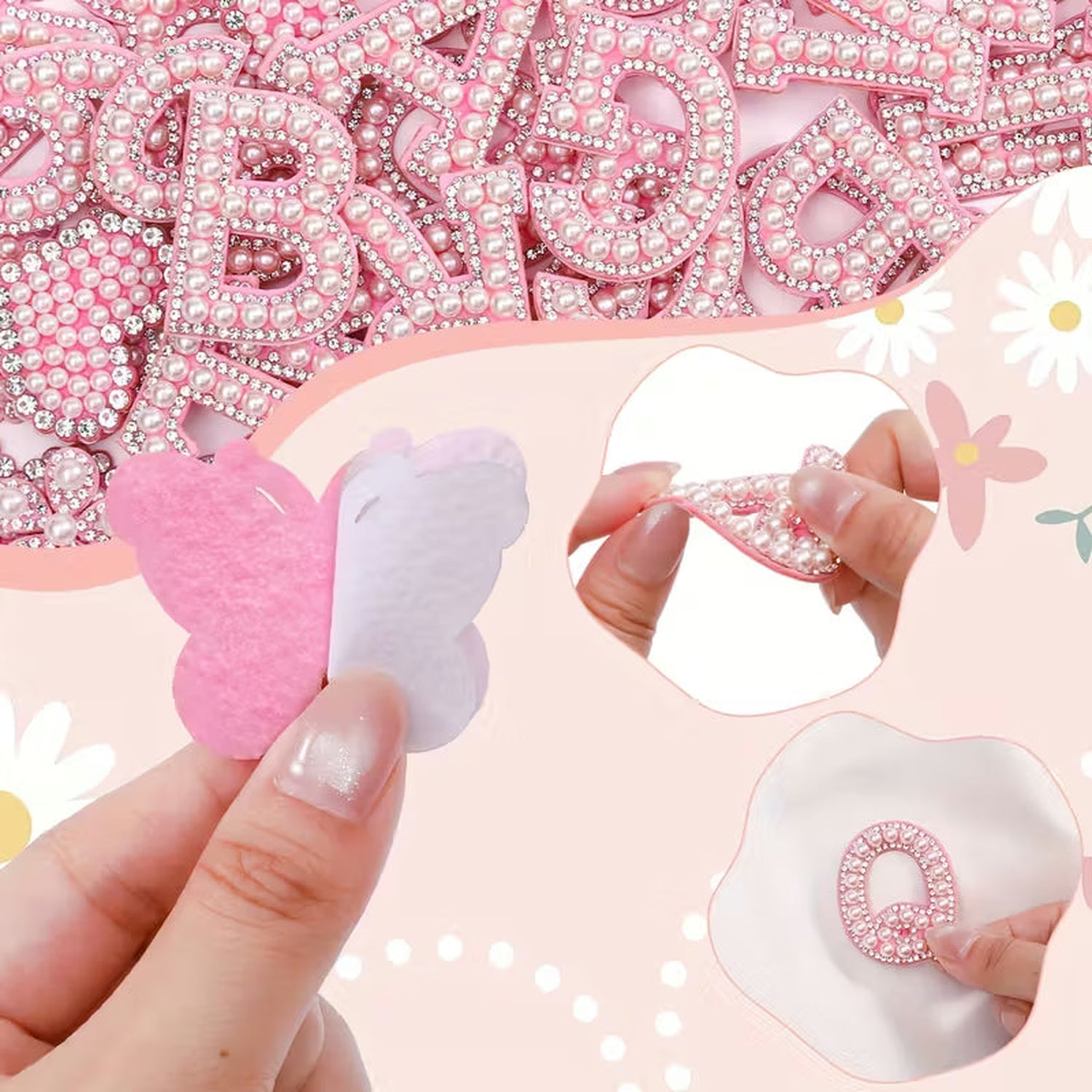 These high quality self adhesive pearl rhinestone letter patches are easily applied to bags, cloths, backpacks, hats, homecoming ribbon, ect. by tear off the protective back film and easily sticking anywhere.
