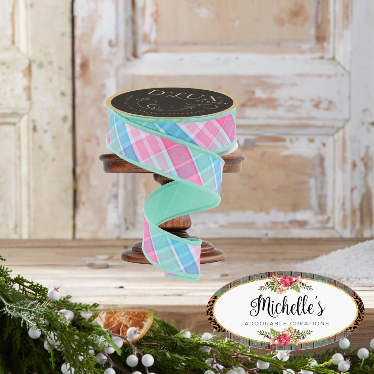 Expertly designed with a premium blend of colors, this 1.5" Bold Plaid Fused Ribbon in Light Teal is the perfect addition to your crafting supply collection. The intricate plaid print in pink and mint, combined with the solid teal base, will add a touch of elegance to any project. With 10 yards in each package, you'll have plenty of ribbon to work with for all your creative needs. LX1110YR