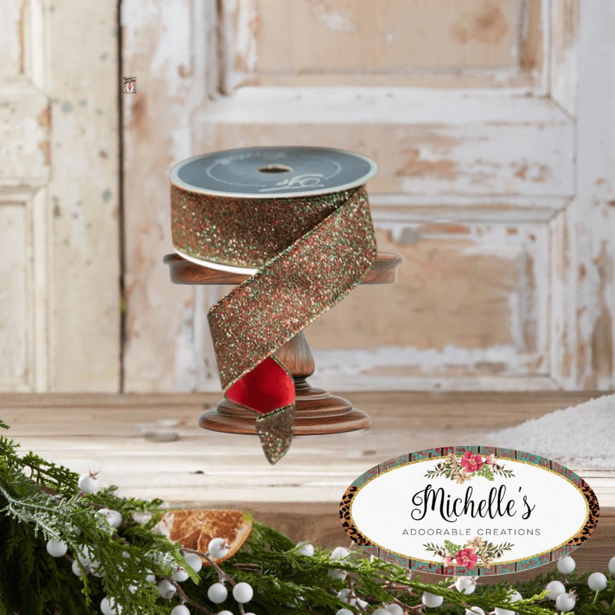 1.5" Diamond Dust Ribbon: Ruby Emerald (10 Yards)