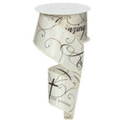 Rejoice in the decorative possibilities offered by this Amazing Grace on satin ribbon! Featuring a wired edge, along with black script, twirls, and a cross against an ivory base, this ribbon will enhance any display you see fit! Add it to a wreath, outfitted with religious ornaments or a sign to make a truly inspirational showpiece. RG0113333